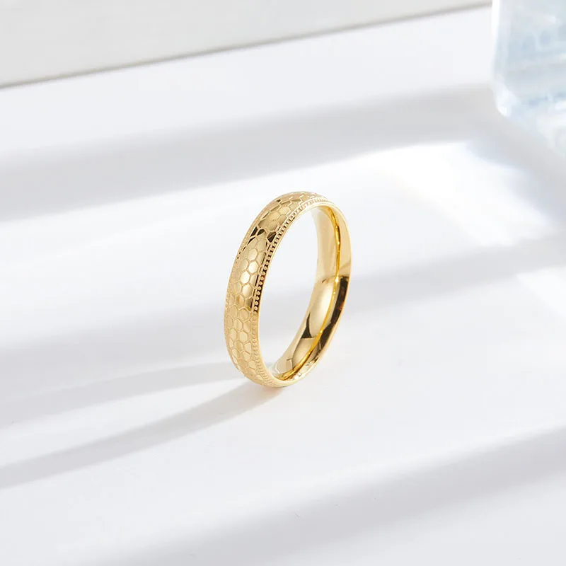 Stainless Steel Rings for Men and Women Gold Color 4mm Honeycomb Shape Finger Ring