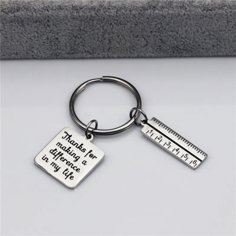 Stainless Steel Ruler Square Brand Waist Keychain Men's And Women's Pendant Jewelry