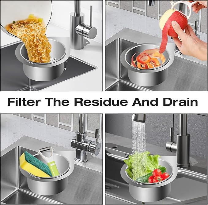 Upgraded sink filter strainer have widens the hanging opening swan sink drain basket ingenious design can save space, and high-quality materials can make you use it healthily and safely. food strainer for kitchen sink can be placed in the corner of the sink for filter leftovers.