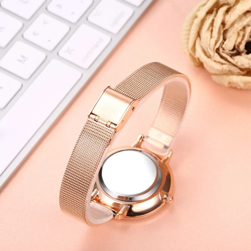 One of the key benefits of the Starry Quartz Mesh Watch is its versatility. Whether you're pairing it with a casual outfit or a formal ensemble, this watch adds a touch of elegance to any look. Its neutral color palette and timeless design make it an ideal choice for various occasions, from everyday wear to special events.