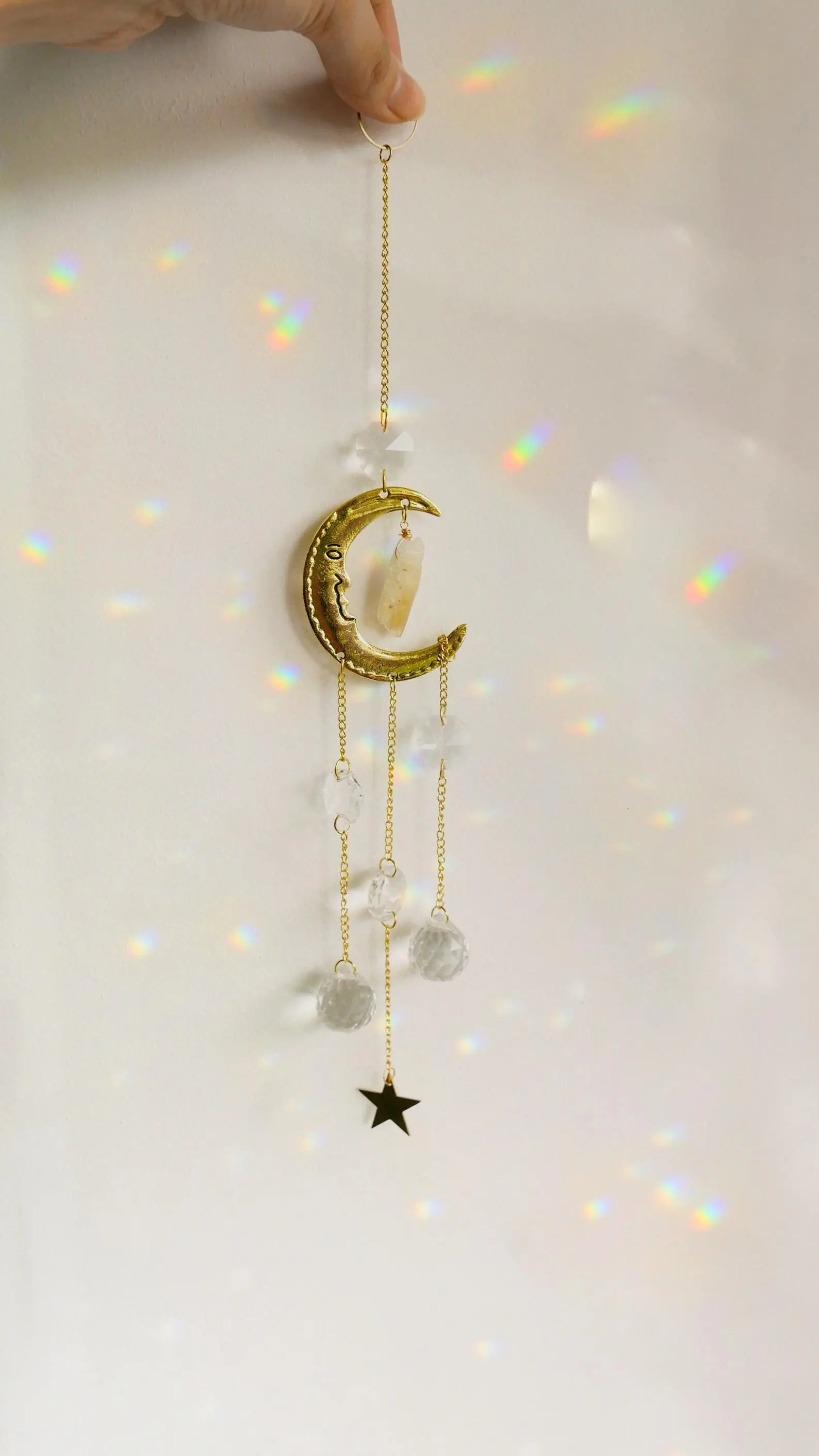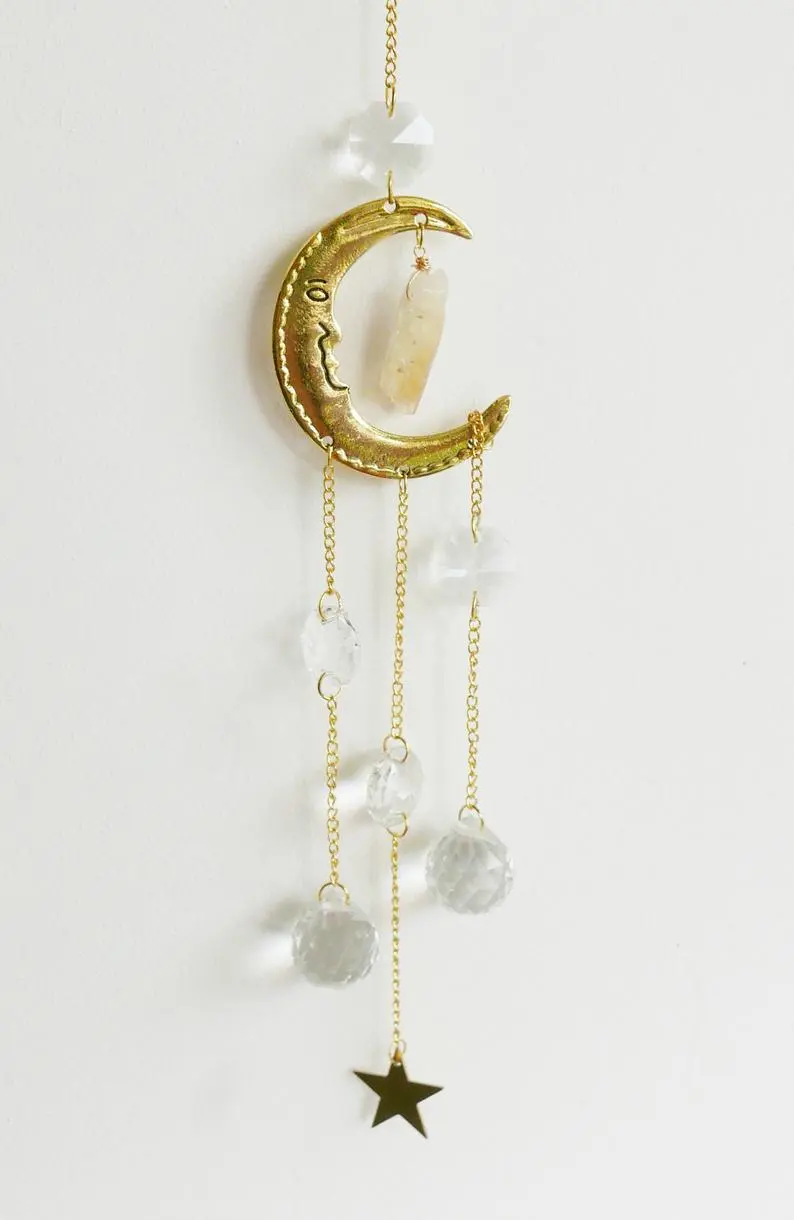 With Stars and Moon Accessories Shiny Wind Chimes made from K9 crystal, you can bring a sense of serenity and cosmic beauty to your home. Whether hanging indoors or outdoors, these wind chimes create a delightful sound and a magical atmosphere wherever they are placed