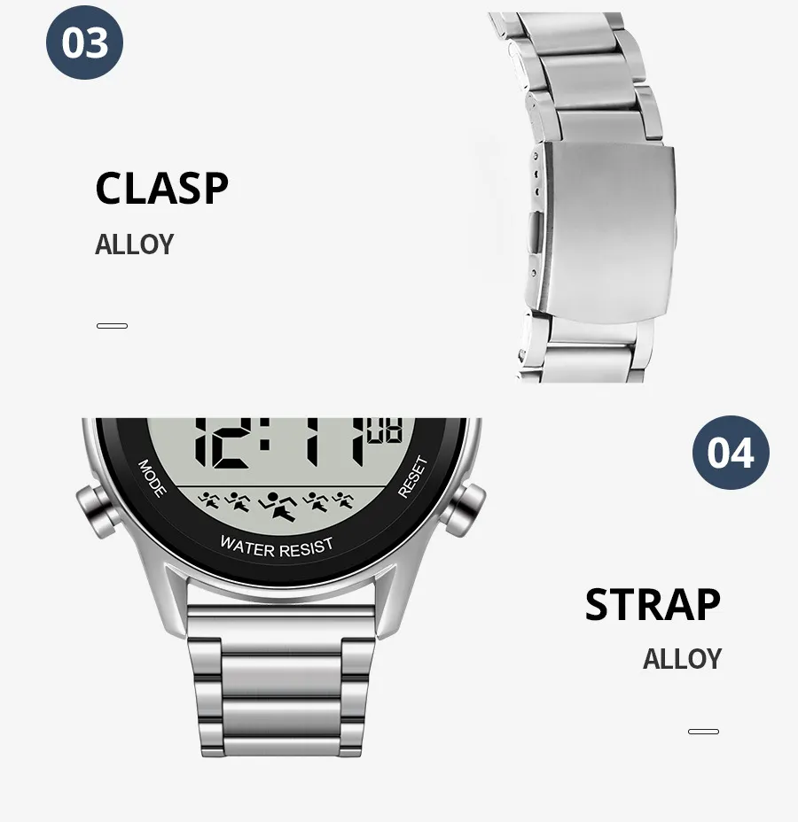The metal construction also offers a sleek and modern look, making the watch appropriate for both sports and casual wear. Whether you're in the gym, at the office, or out on the town, the steel belt ensures that the watch stays securely on your wrist and complements your overall style.