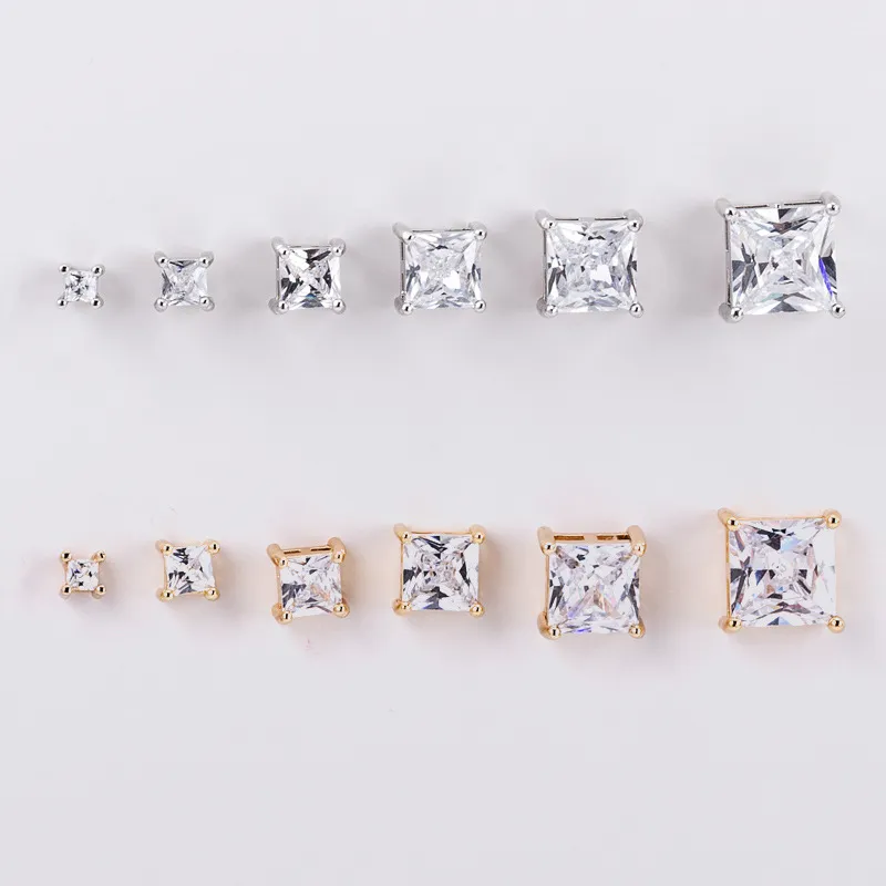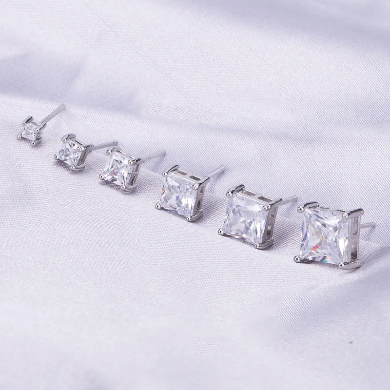 Sterling Silver Needle Four-claw Square Stud Earrings Inlaid Diamond Moissanite Stud Earrings 2-7mm Ear Ring