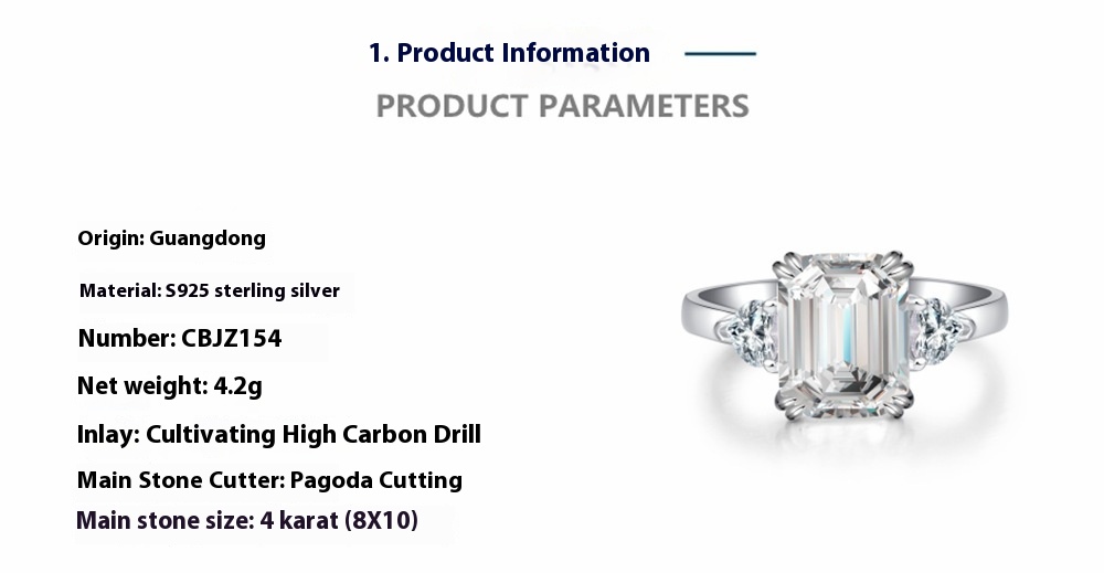 Sterling Silver Ring European And American Cube Sugar Pagoda Cut Ring