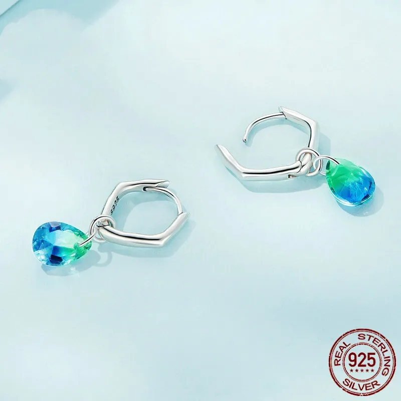 Sterling Silver S925 Water Drop Earrings Simple Gradient