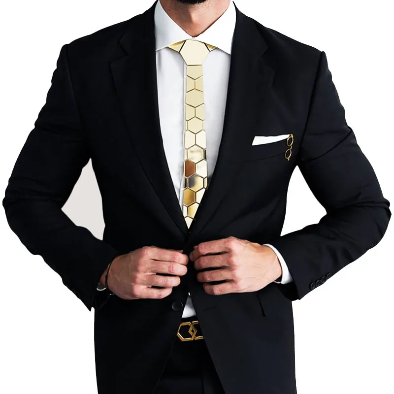 Stitching Geometric Plaid Gold Tie Men's Suit Clothing