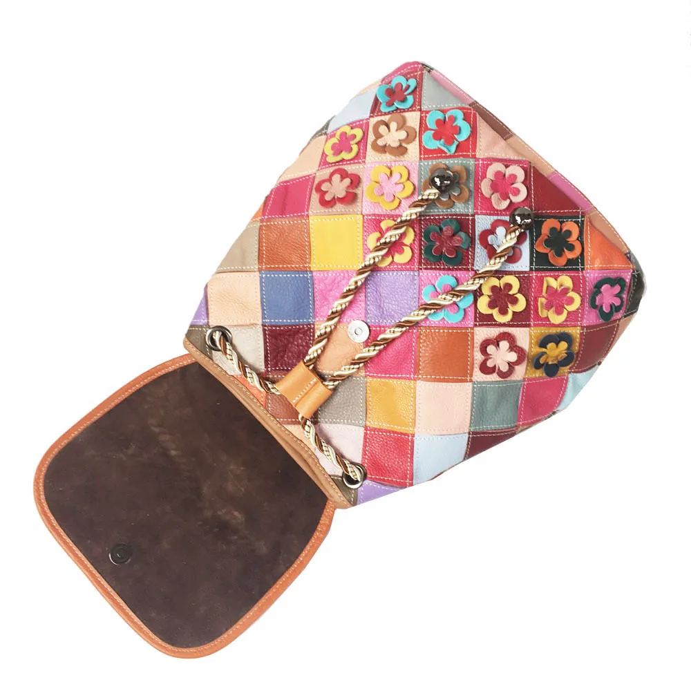 Elevate Your Style with the Stitching Rhombus Retro Women’s Leather Backpack