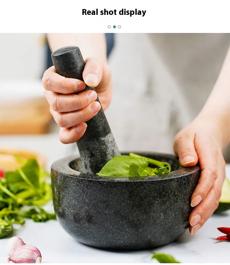 Using the stone mortar and pestle is incredibly easy. Simply place your ingredients inside the mortar and use the pestle to grind or crush the contents to your desired texture. The rounded design of the mortar makes it easy to manipulate the pestle, allowing for a controlled grinding motion. After use, cleaning is a breeze—just wash with warm water and a mild detergent, then let it air dry. Avoid using harsh chemicals or abrasives to maintain the stone’s natural finish.