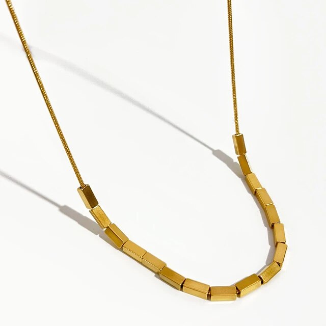 Unique Design: Emphasize the unique square shape of the beads, which sets this necklace apart from traditional round-beaded