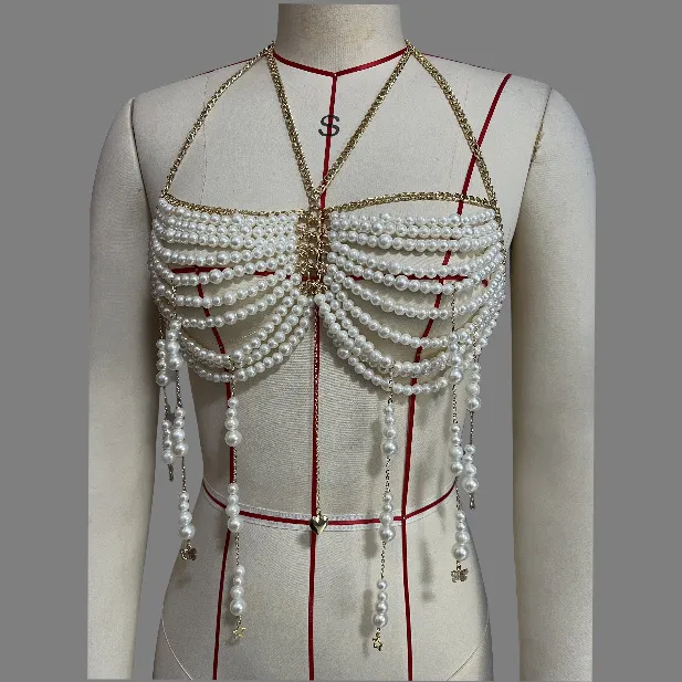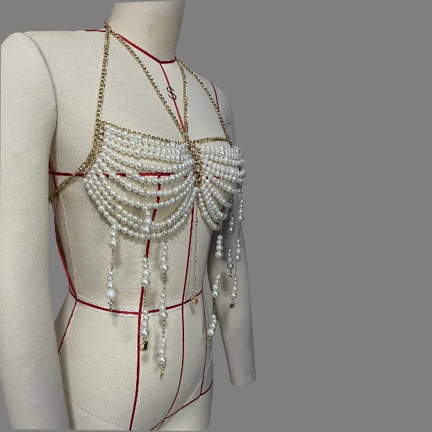 Applications of the Stringed Pearls Chest Necklace Body Chains