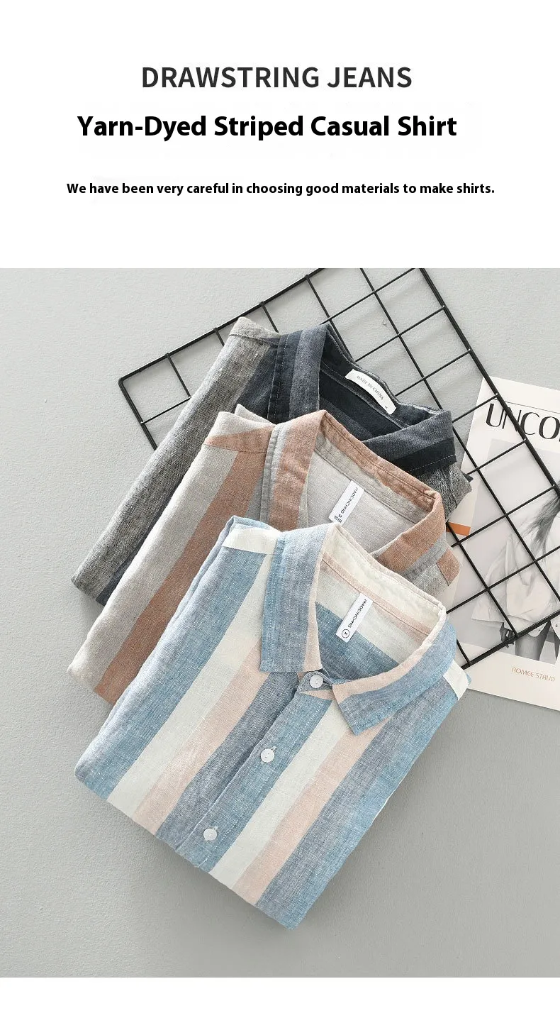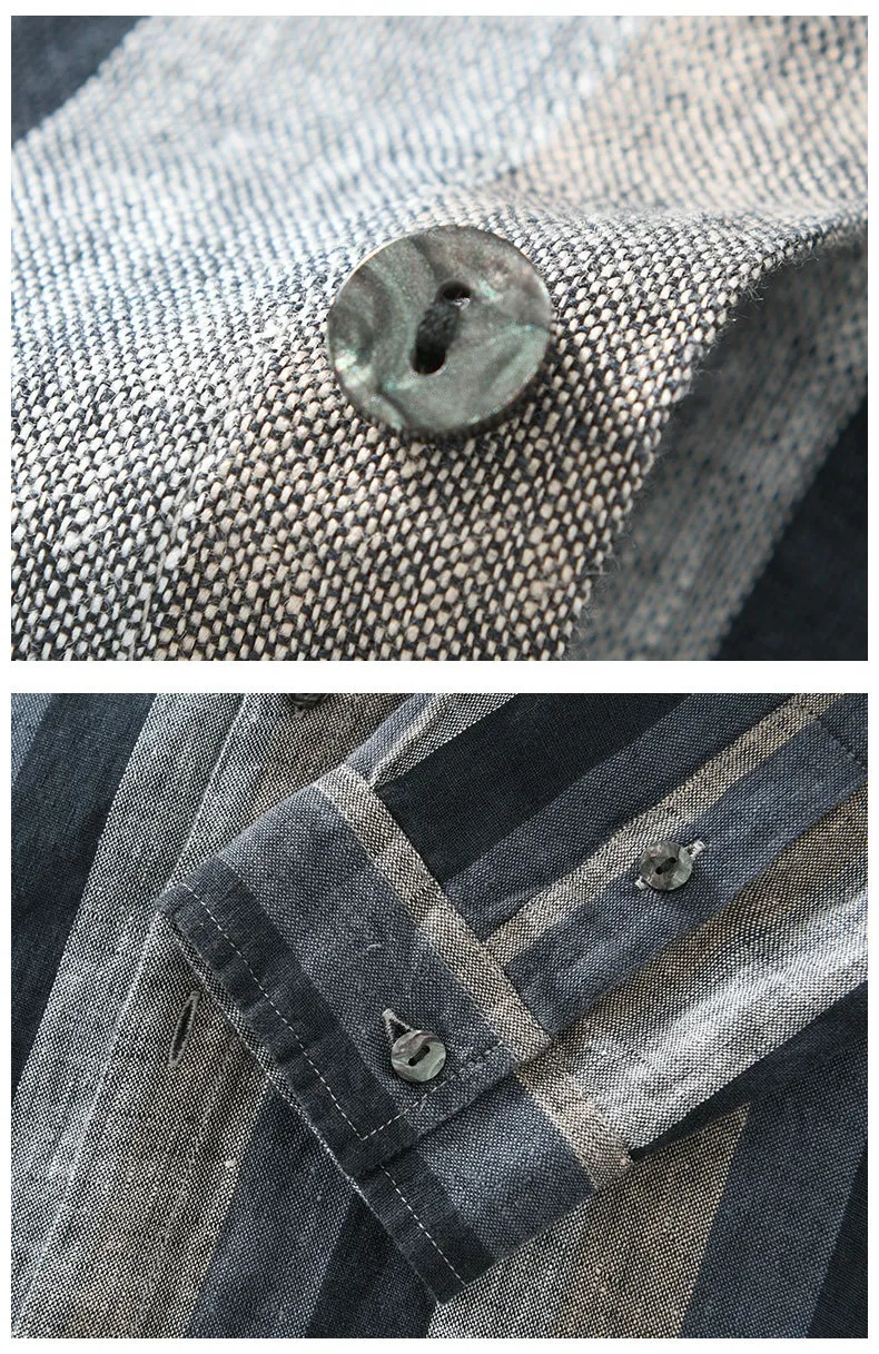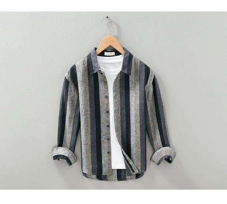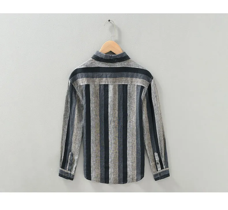 Striped Color Matching Long Linen Sleeves Shirt