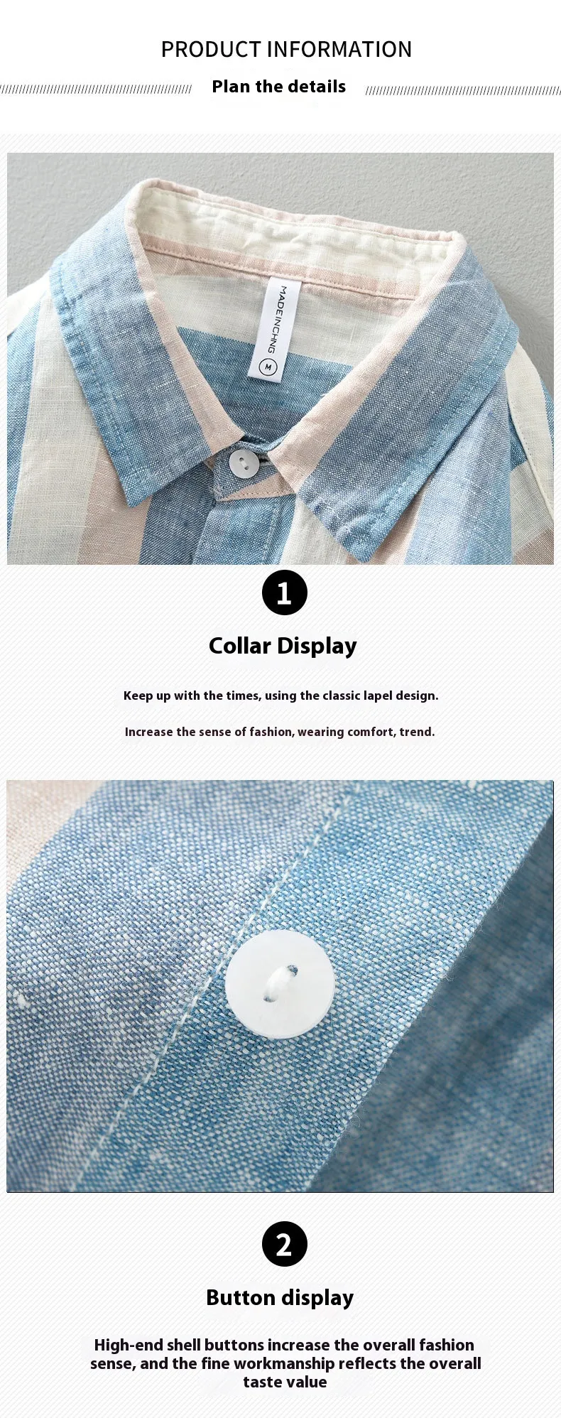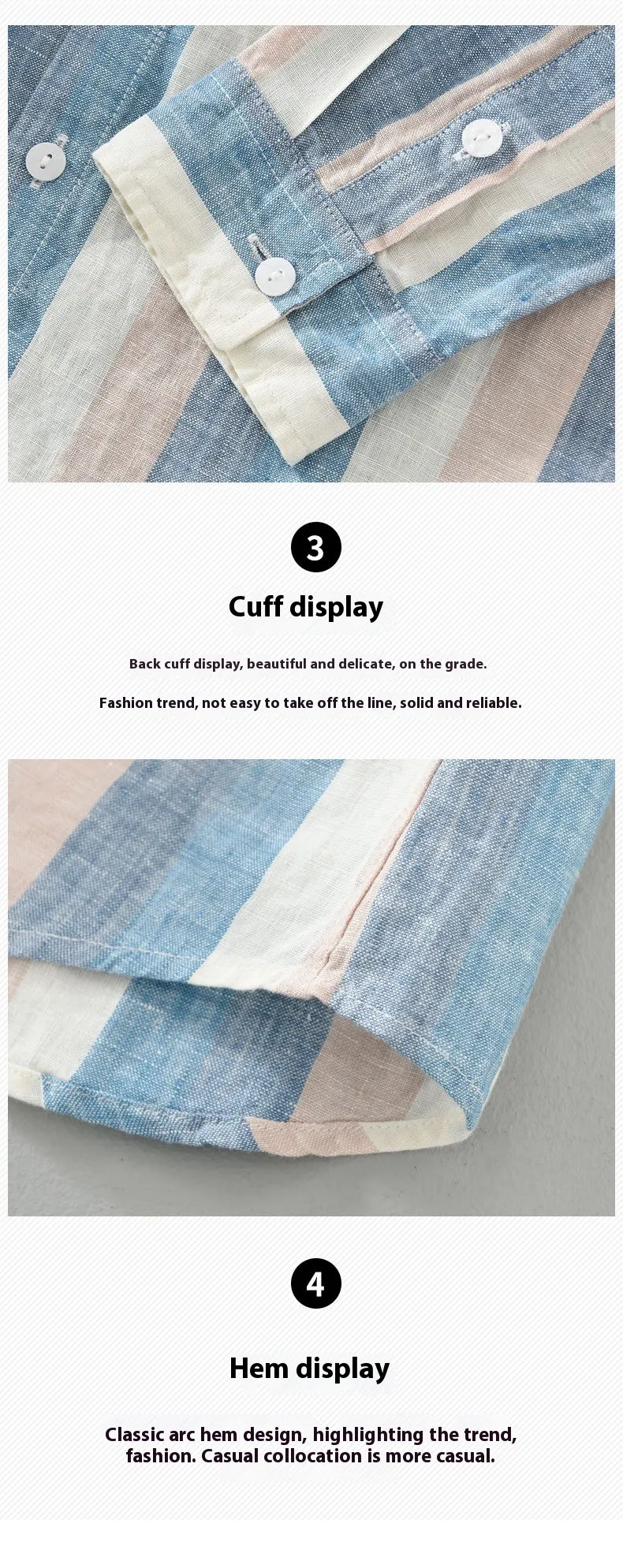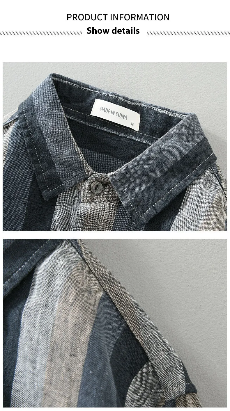 Striped Color Matching Long Linen Sleeves Shirt