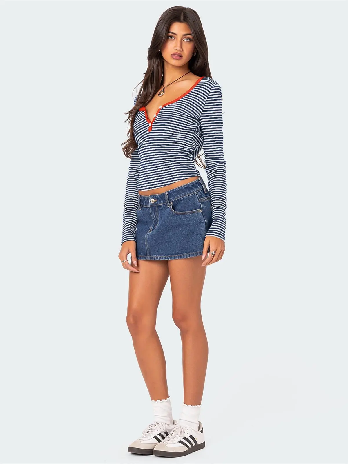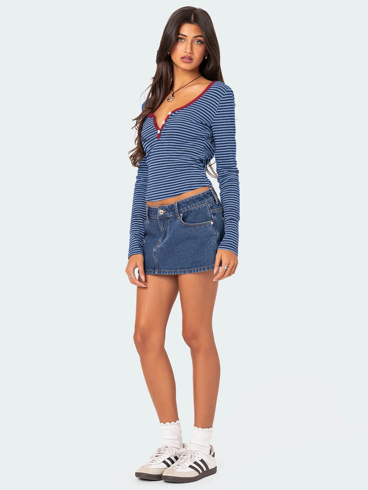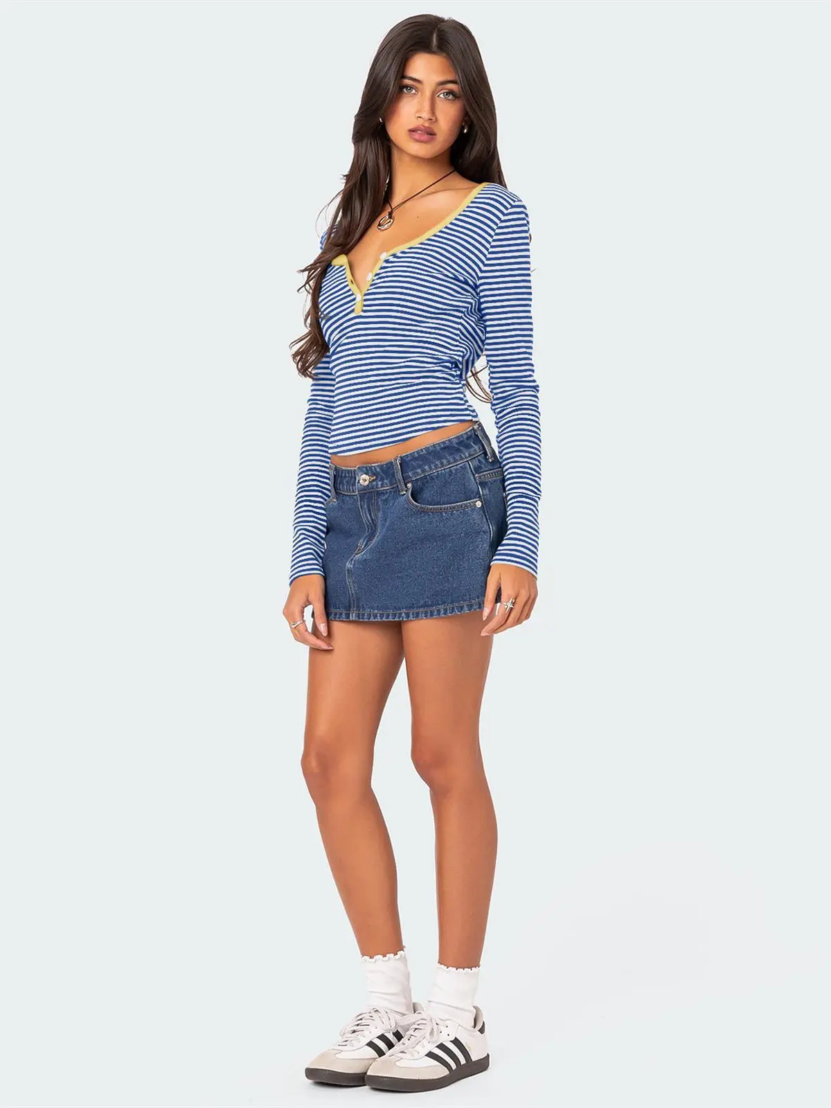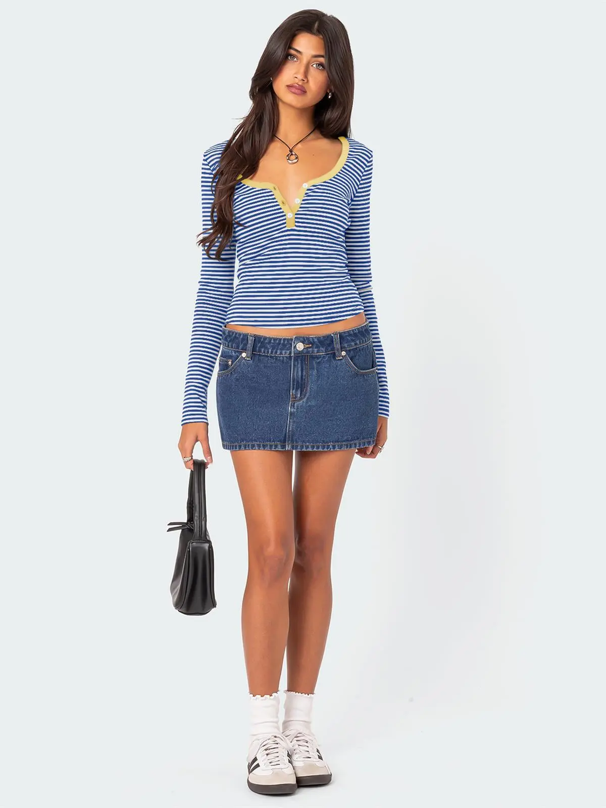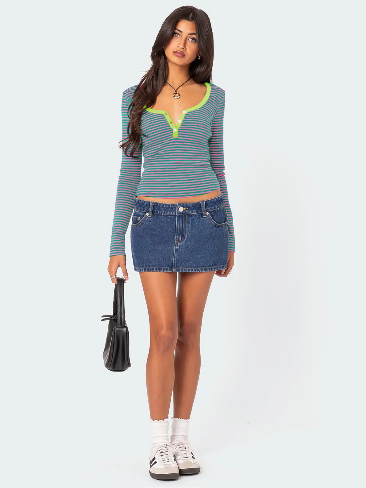 Contrast Color Striped Sweater Women’s Button Slim T-shirt