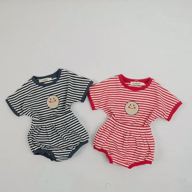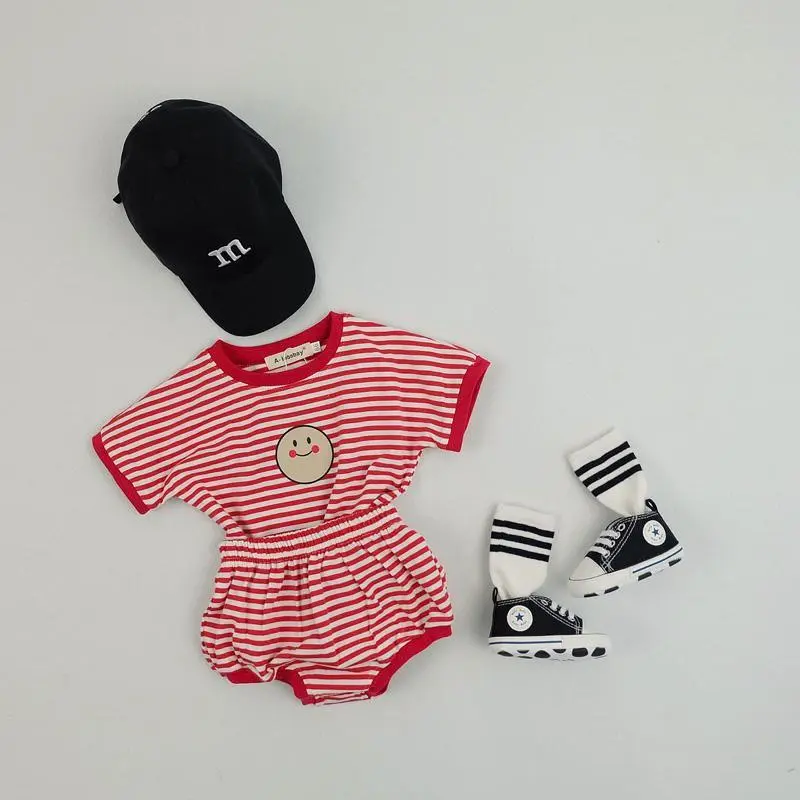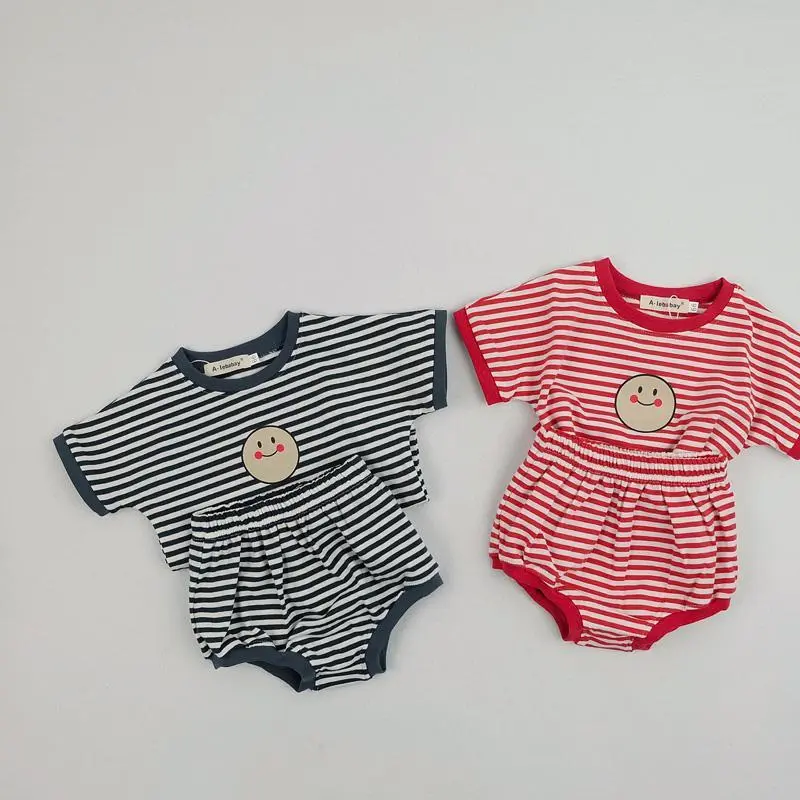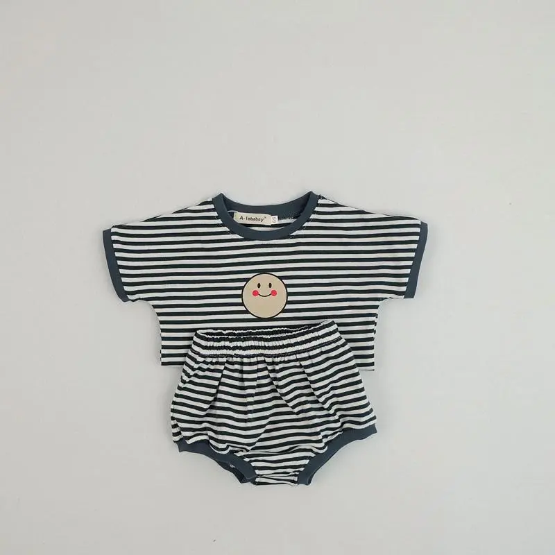 The Striped Short-sleeved T-shirt Bread Shorts Suit Infant Two-piece Set is the perfect combination of comfort, style, and practicality for