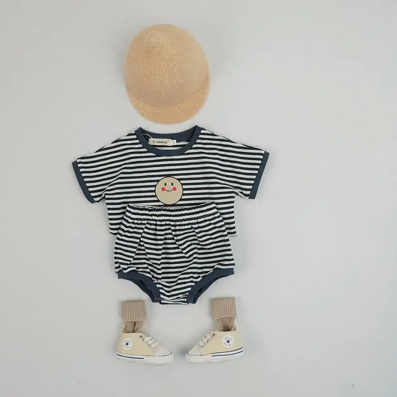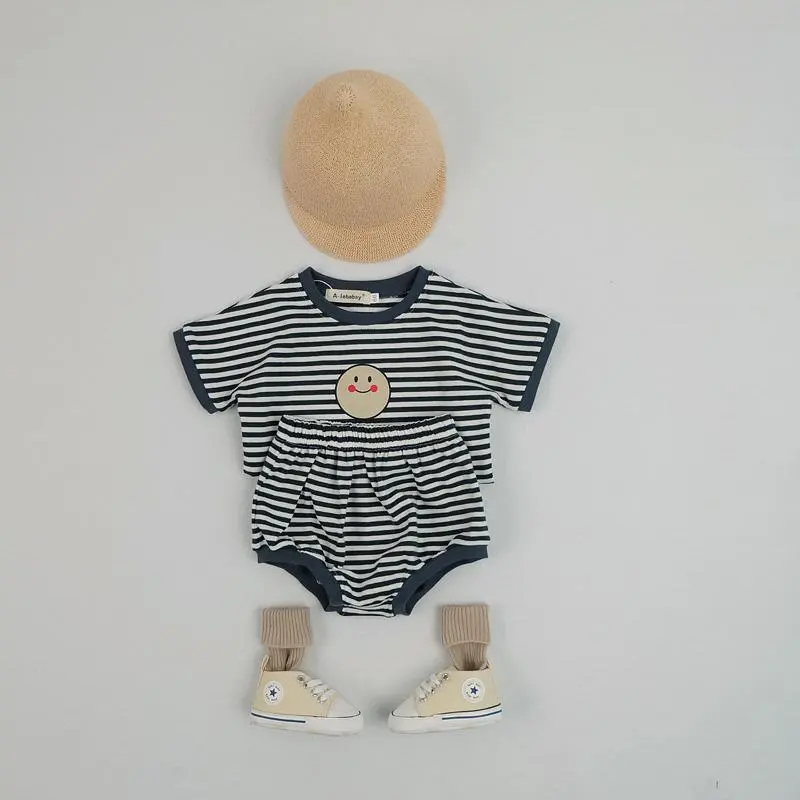 Striped Short-sleeved T-shirt Bread Shorts Suit Infant Two-piece Set - Adorable and Comfortable Outfit for Little Ones