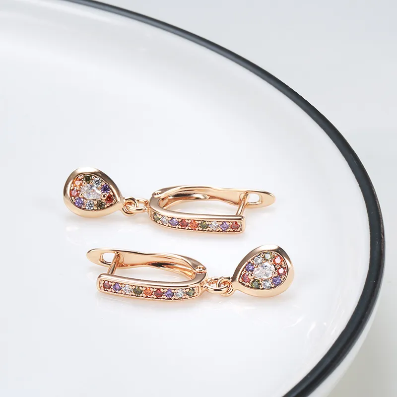 Stud Earrings For Women Rose Gold Stud Earrings Simple Colorful Zircon
