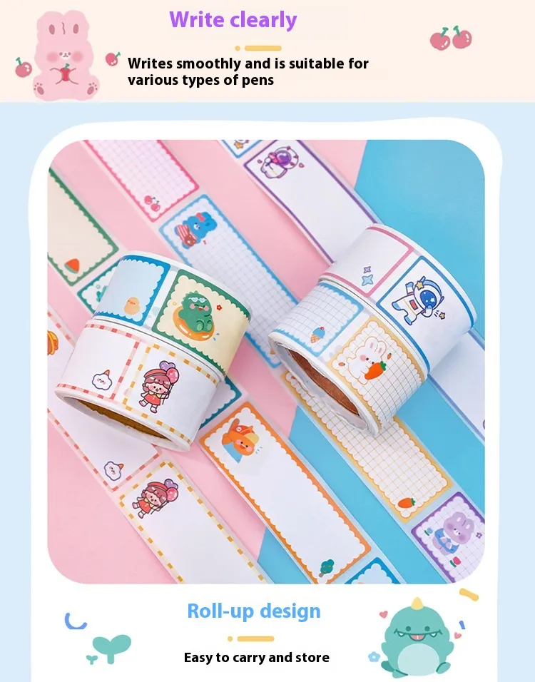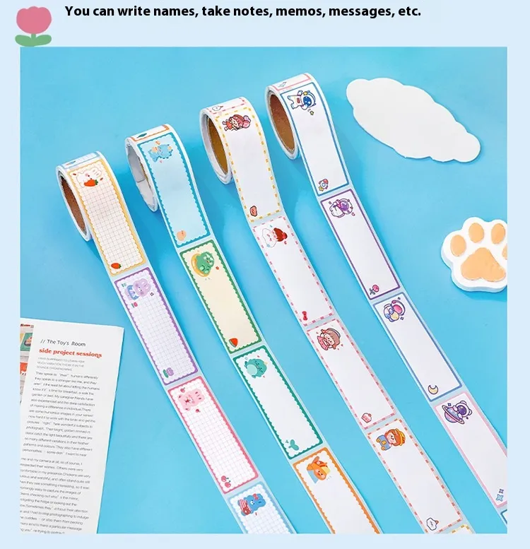 Stay organized with a touch of creativity using the Student Cartoon Tape Name Tape Creative Multifunctional Message Index Stickers. Perfect for students, teachers, and anyone looking to add some flair to their notes, projects, or belongings, these unique, cartoon-themed stickers are both functional and fun. Whether you're labeling your books, organizing your office supplies, or sending a creative message, these multifunctional tape name stickers offer endless possibilities for personalization and creativity.
