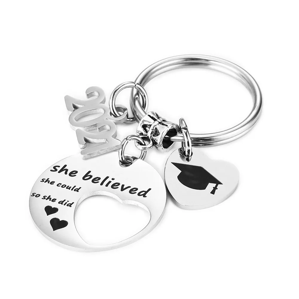 Student Graduation Season Gift Keychain She Believed She Could Stainless Steel
