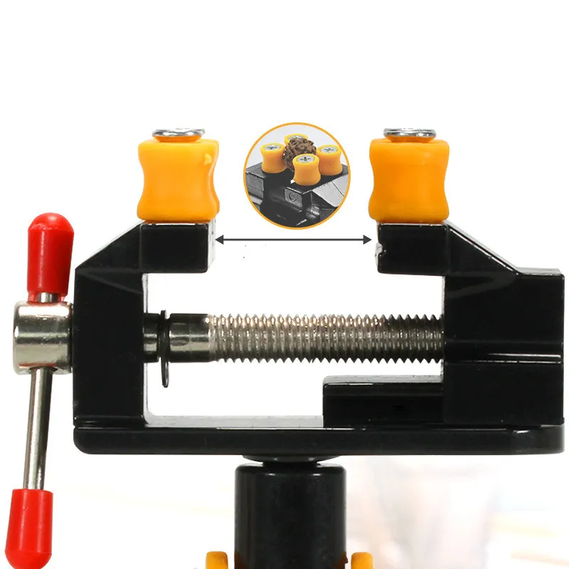 Designed with versatility in mind, the mini vise can easily grip and hold small objects, making it ideal for tasks that require accuracy, such as engraving, micro-carving, or model-making. The adjustable clamp opens wide enough to accommodate a variety of materials, including wood, plastic, metal, or jewelry pieces. The vise head can also rotate 360 degrees, allowing for flexible positioning and easy access to your work from any angle.