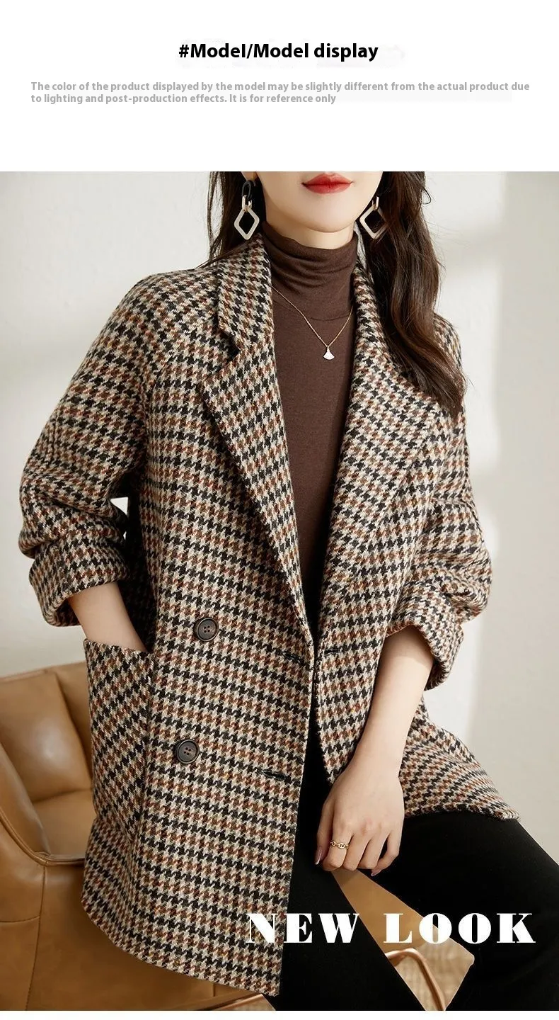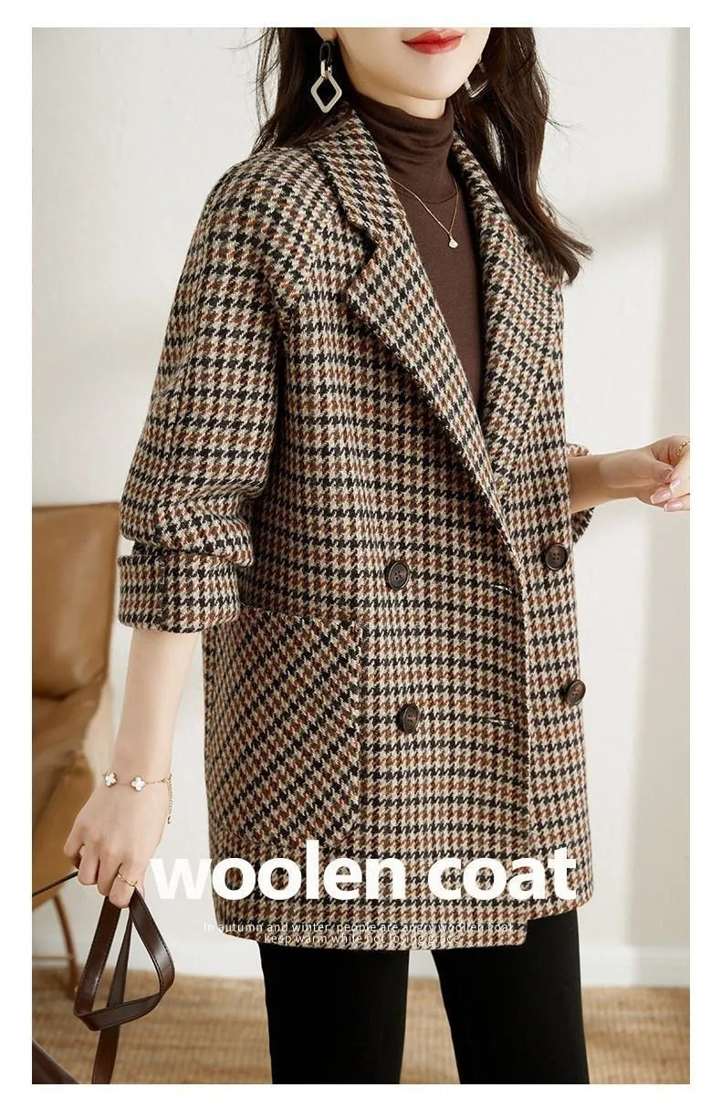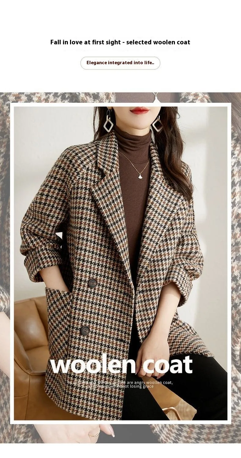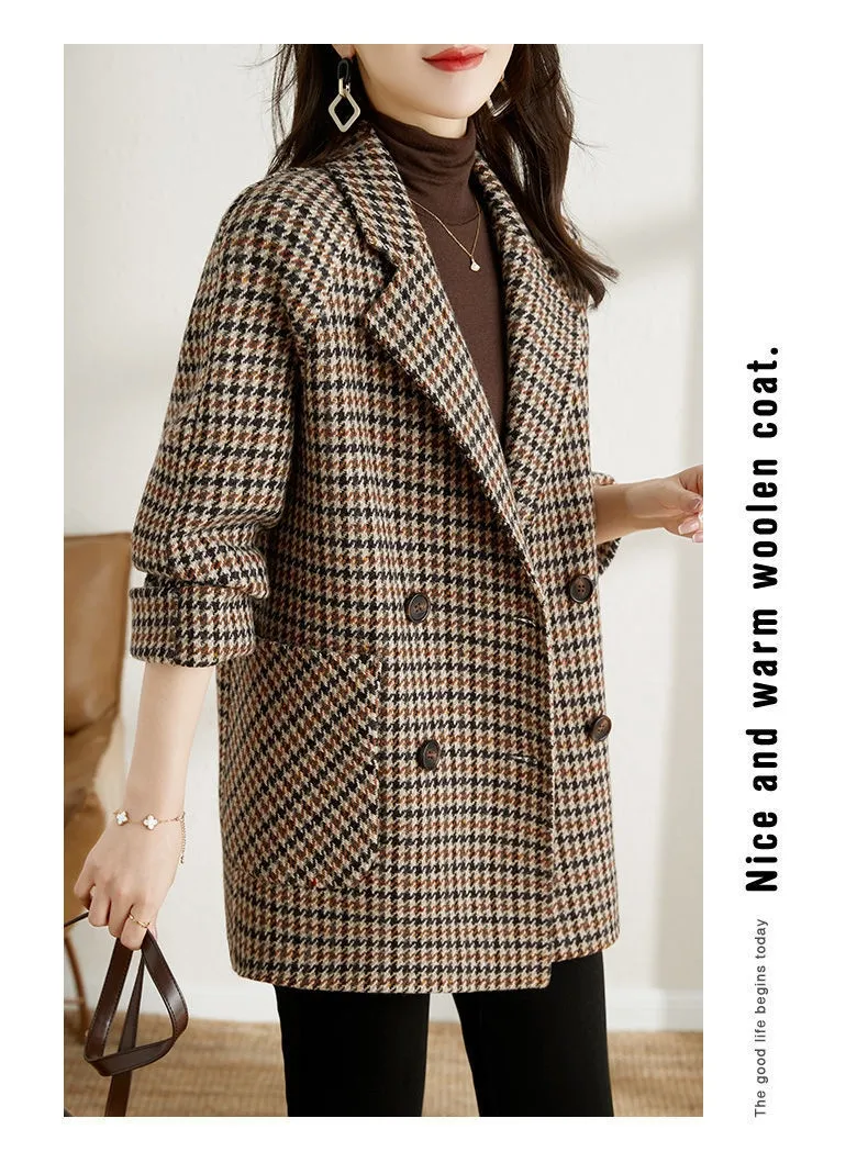 Why Choose the Suit Collar Houndstooth Woolen Coat?