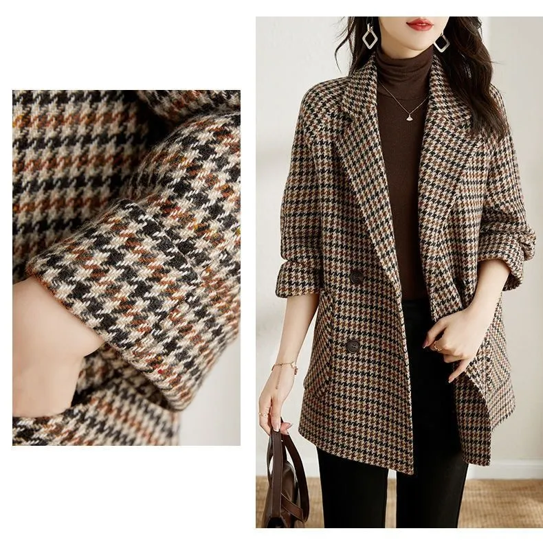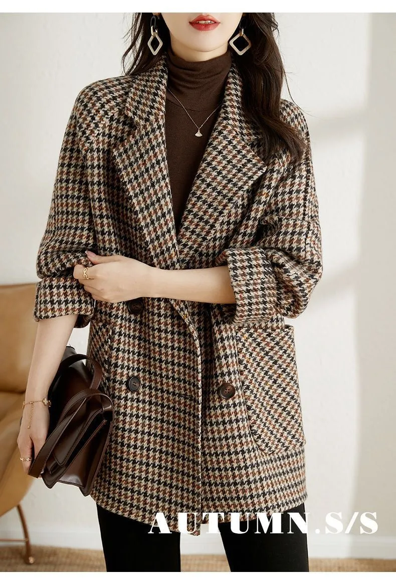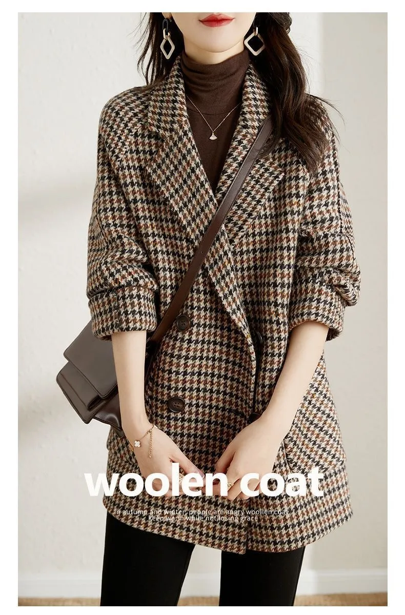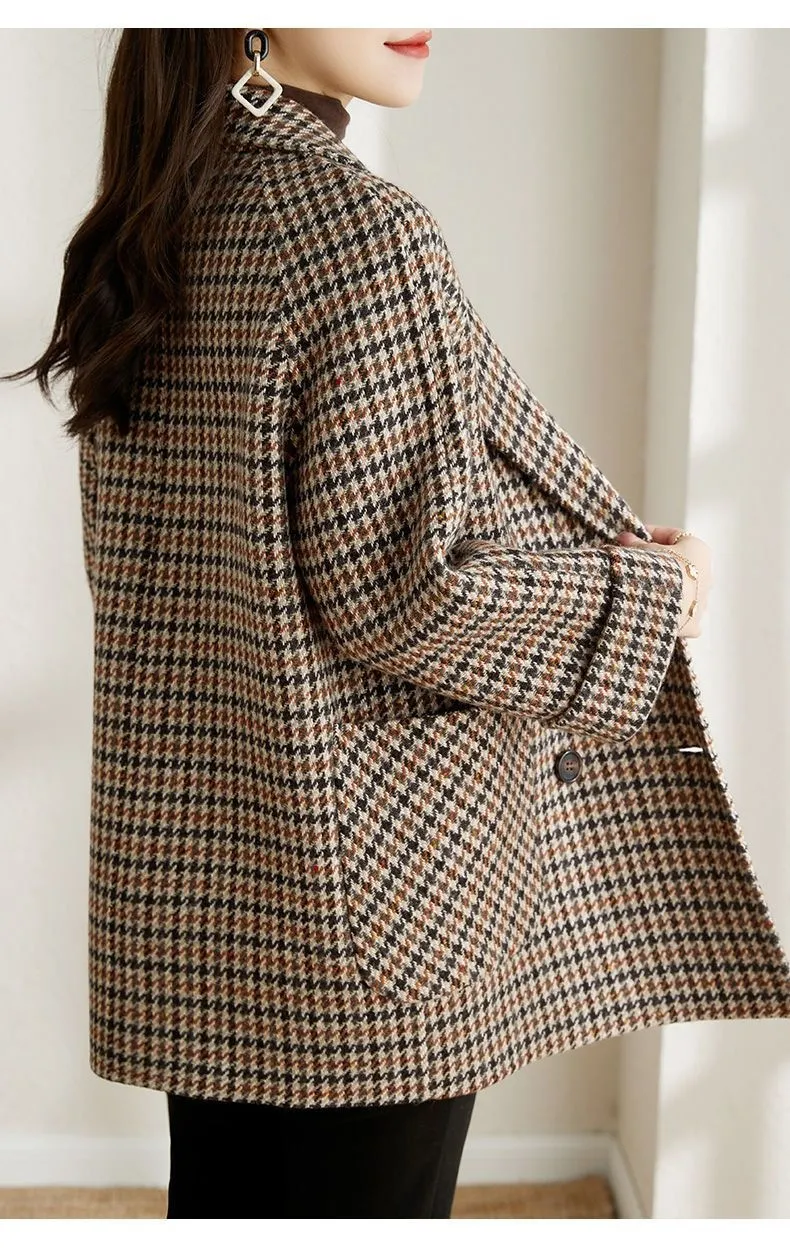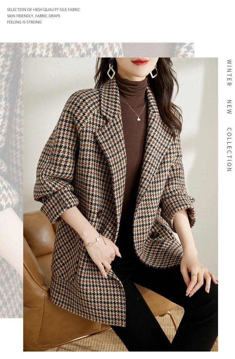 Why Choose the Suit Collar Houndstooth Woolen Coat?