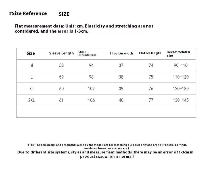 between two sizes. Please allow 2-3cm differences due to manual measurement. 2. Please check the size chart carefully before you buy the