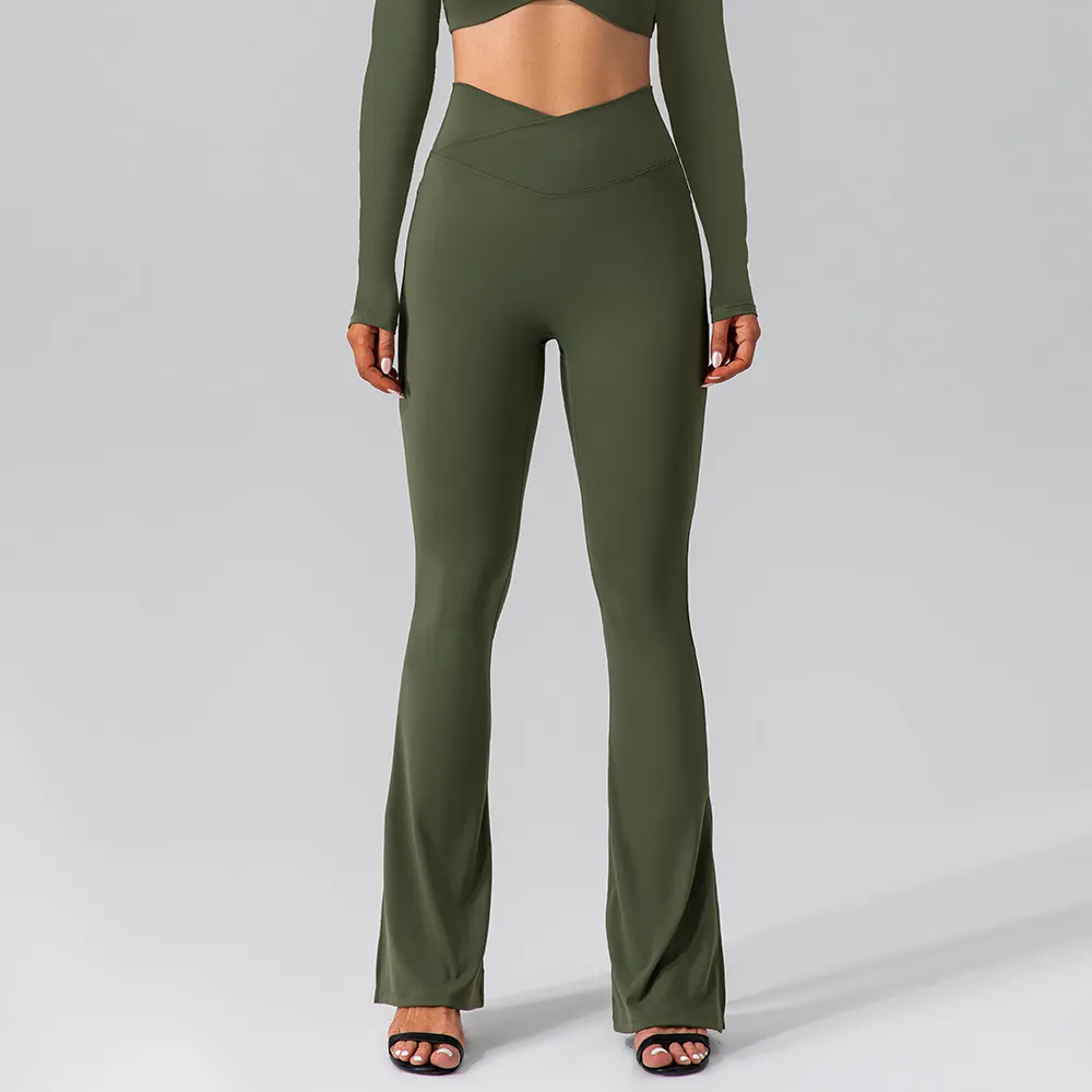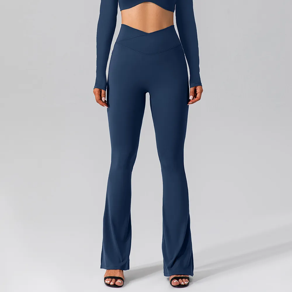 The wide flare starting at the knee adds movement and a flattering silhouette, balancing comfort with fashion-forward style.