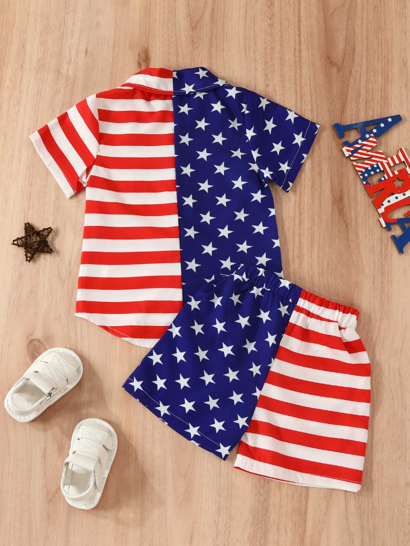 Designed with an active lifestyle in mind, the Summer Boys' Independent Japanese Star Stripe Single-breasted Short Sleeve Shorts Suit is perfect for boys who love to move and play. The shorts provide ample space for movement, whether they’re running, jumping, or simply enjoying the day. This suit lets them do all of that while still looking stylish and put-together.