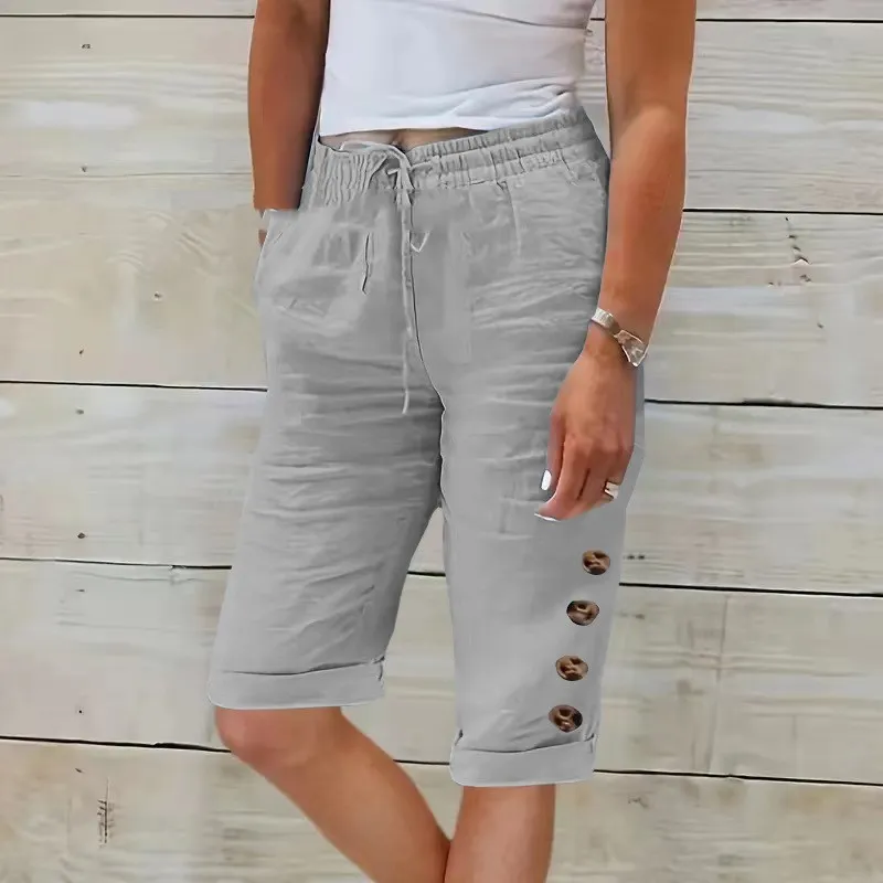 With their elastic waistband and wide-leg design, these pants are designed for all-day comfort. You can wear them while running errands, enjoying a day out with friends, or simply relaxing at home. The flexible fit ensures that you can move freely without feeling restricted, while the natural fabric keeps you comfortable in hot weather.