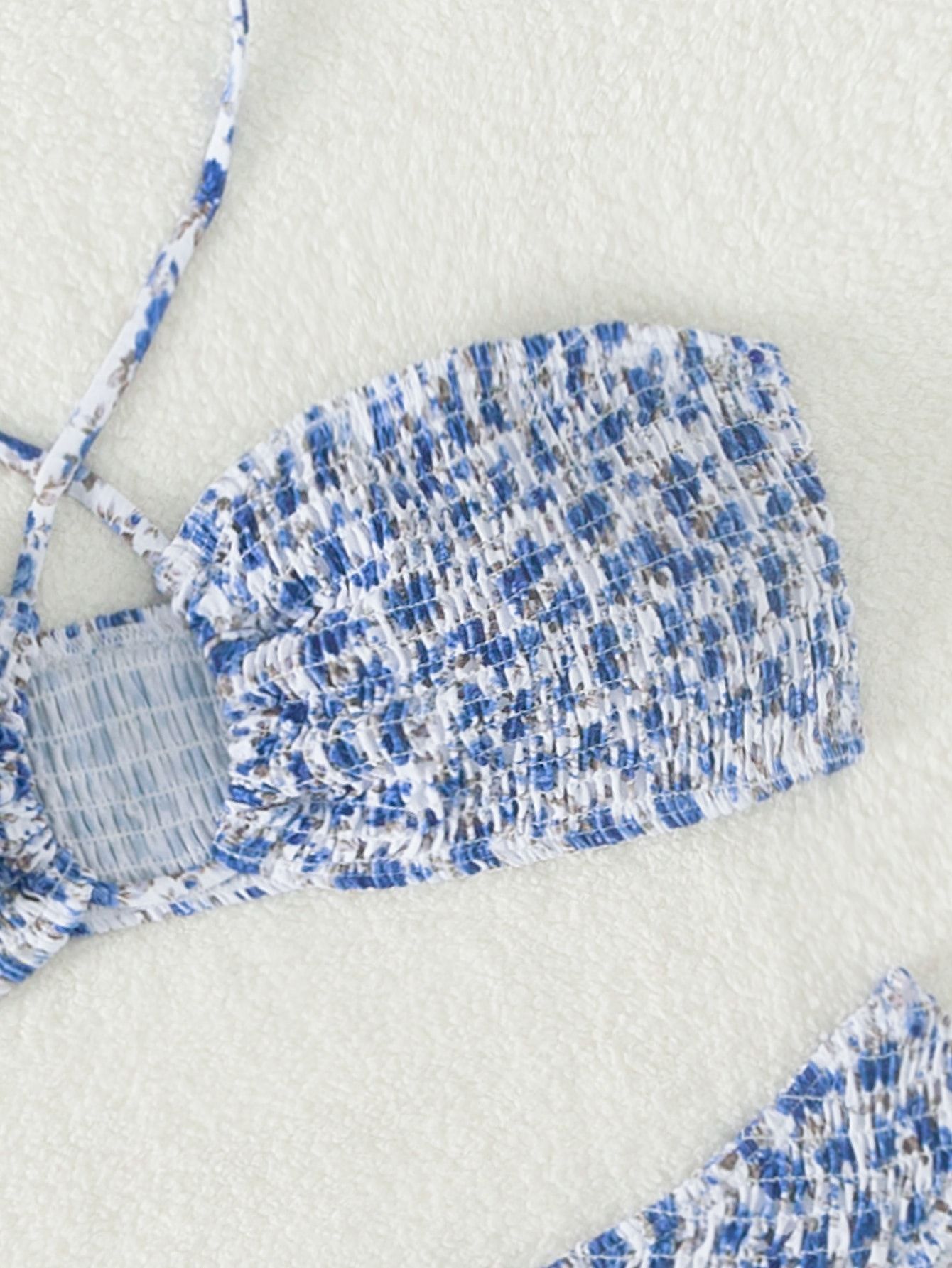 Crafted from high-quality polyester fiber, this bikini set offers a comfortable and breathable fit. The halter neck design allows for adjustable support, ensuring a secure and customizable fit. The set includes a low waist bikini bottom that complements the floral top, providing a balanced and chic silhouette. Ideal for both lounging and swimming, this bikini set is a versatile addition to your summer wardrobe.