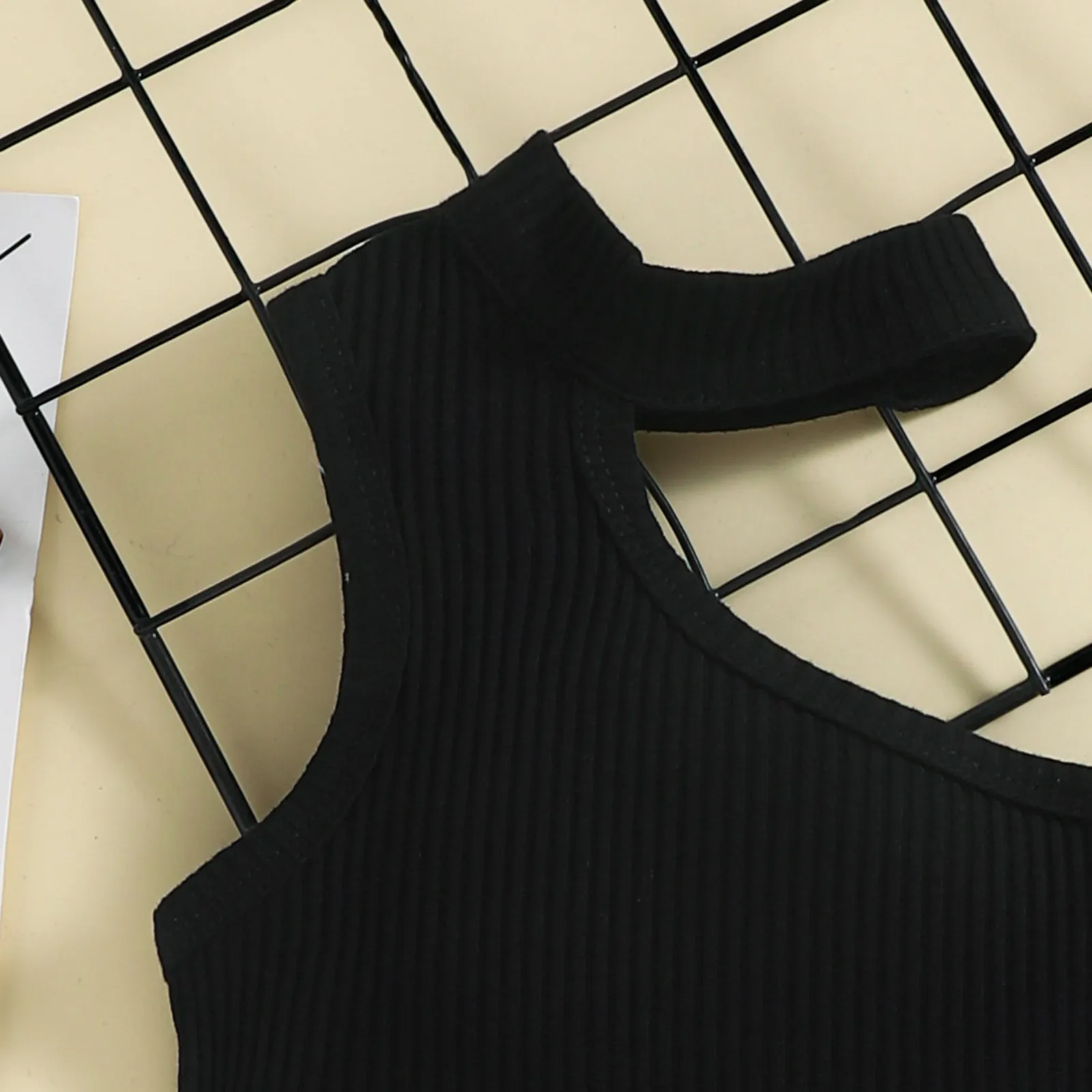 Summer Girl Ins Shoulder Halter Sunken Stripe Top Shorts Suit