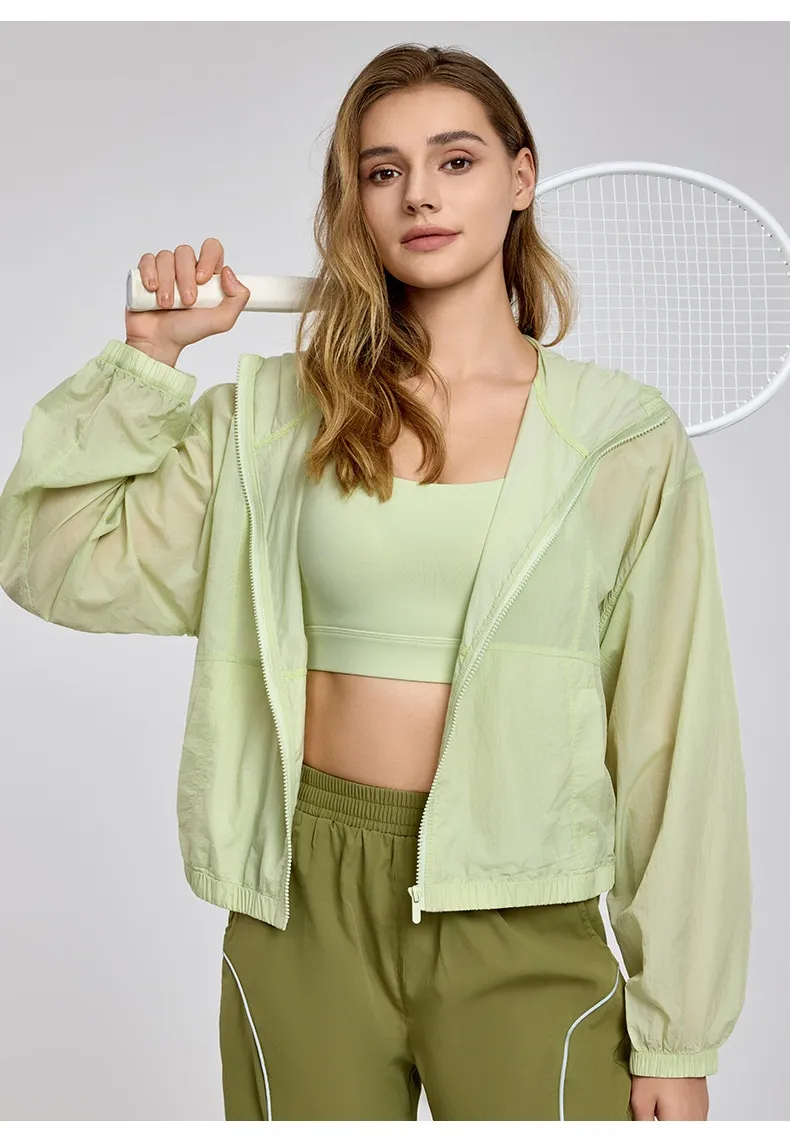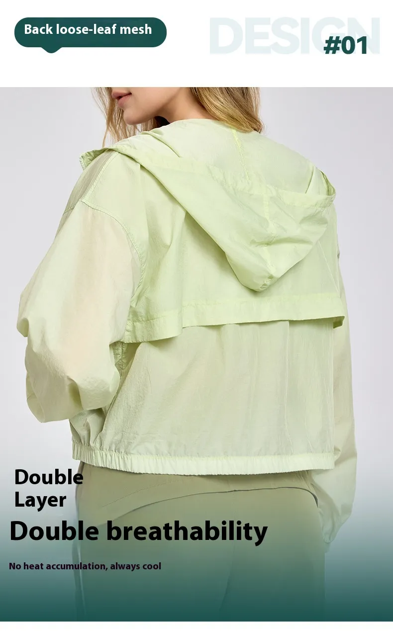 Summer Lightweight Sports Yoga Jacket Loose Hooded Casual Lightweight