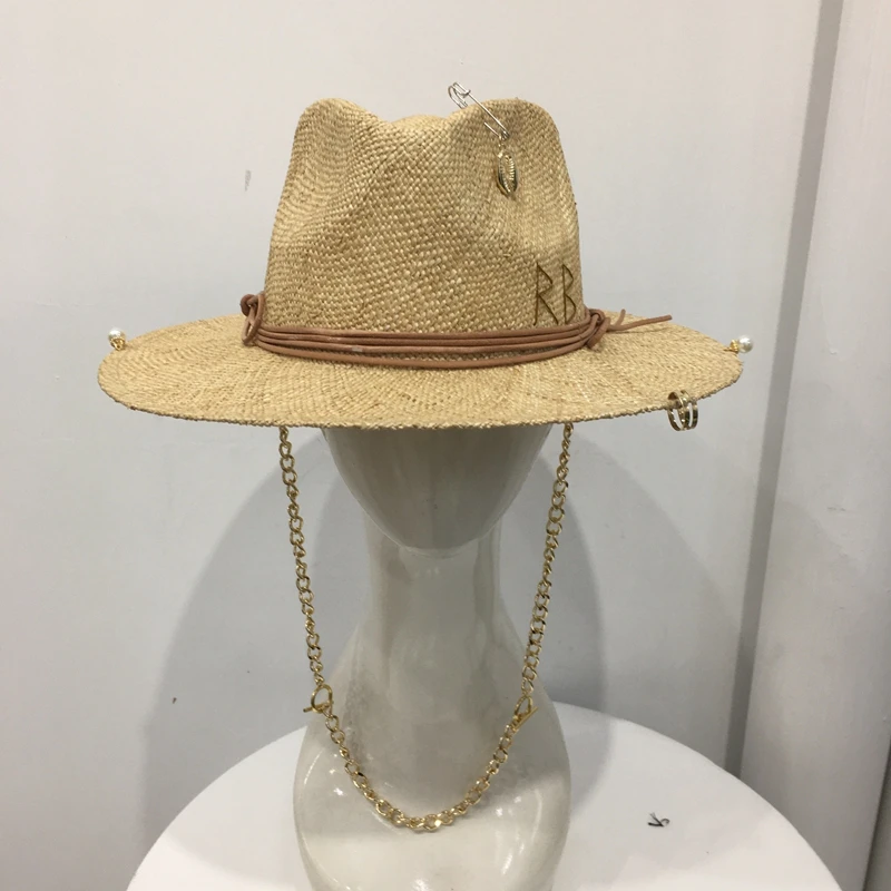 your summer wardrobe. Crafted from high-quality raffia straw, this stylish women's straw Panama hat features a unique chain