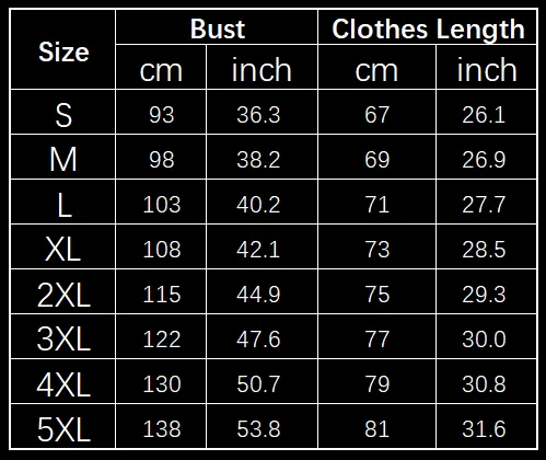 Size: S/M/L/XL/2XL/3XL/4XL/5XL