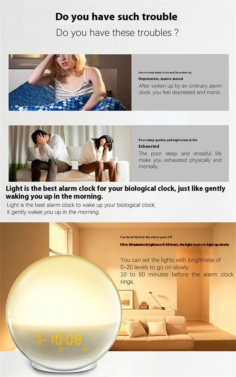 sunrise lamp, wake-up light, sunrise alarm clock, best sunrise lamp, light therapy for sleep, wake up naturally, LED sunrise lamp, smart sunrise lamp, sound therapy wake-up light, circadian rhythm light, sunrise alarm clock with sound, gradual wake-up light, sunrise light for sleep aid, smart home wake-up light, best wake-up light for mornings