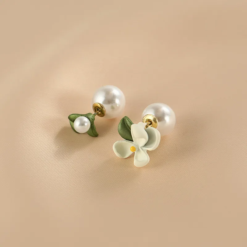 Super Fairy Mori Style Asymmetric Flower Pearl Stud Earrings