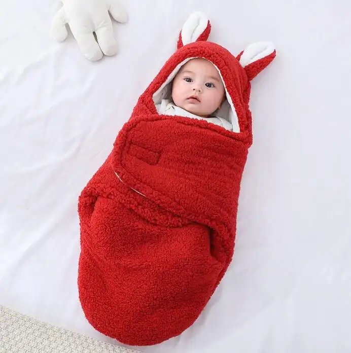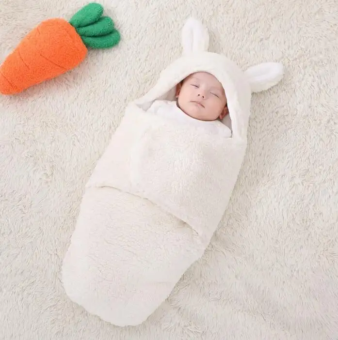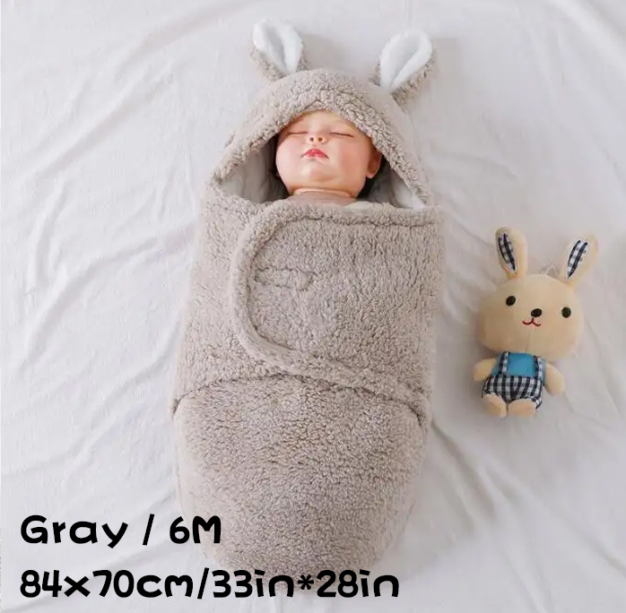 Super Soft Baby Sleeping Bag Fluffy Fleece Newborn Blanket Swaddle Blankets, Unisex Baby Wrap For Newborn Baby Boys Girls With Head-Protecting & Head-Supporting Function, Wearable Swaddle Sleep Sack