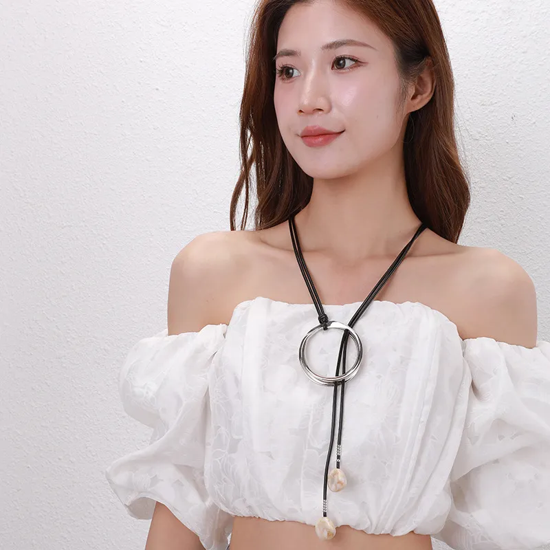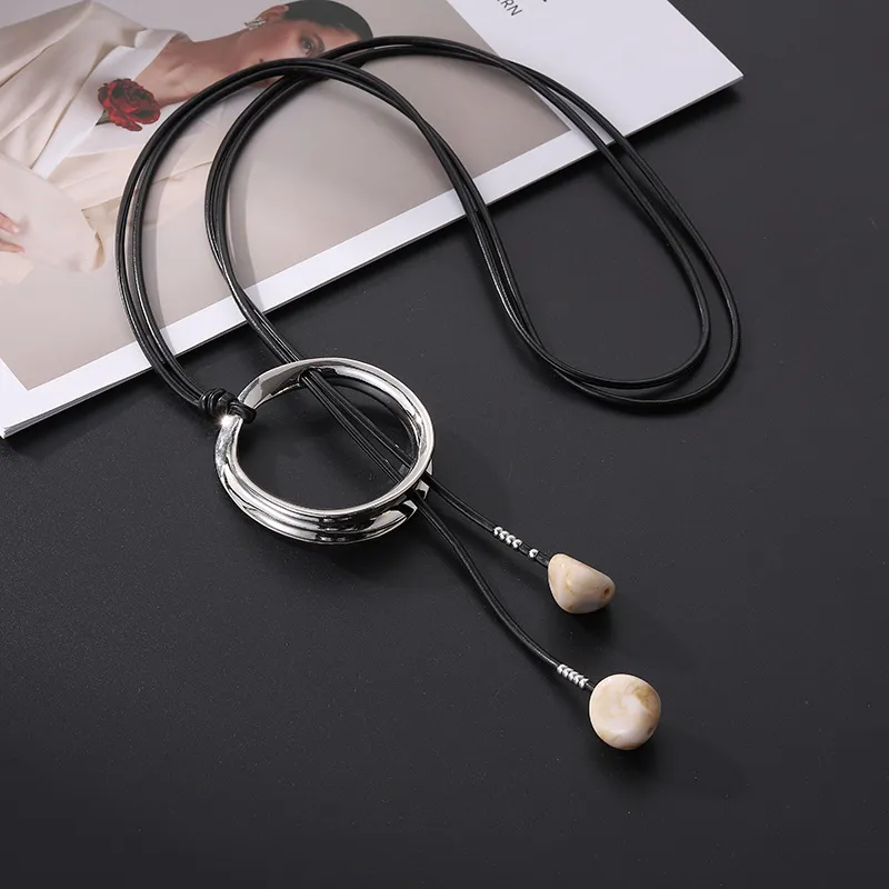 Sweater Long Chain Women's Retro Leather Rope Exaggerated Necklace: Bold, Stylish, and Statement-Making Jewelry