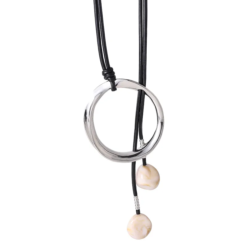 The leather rope design adds a vintage-inspired touch to the necklace, giving it an earthy, retro charm. The combination of leather and metal creates an interesting contrast, merging modern elements with vintage aesthetics.