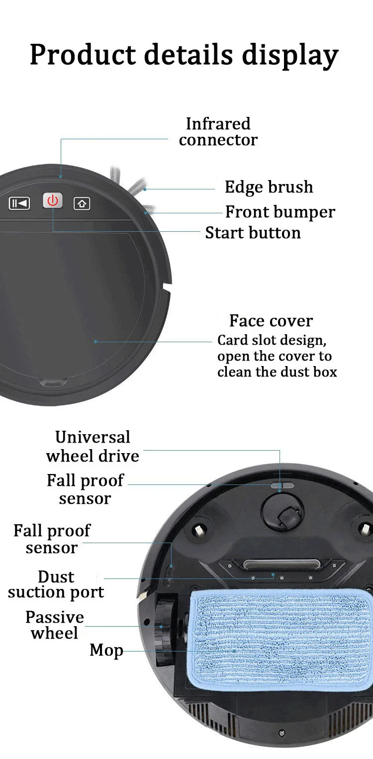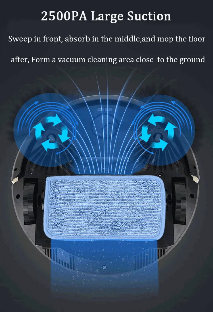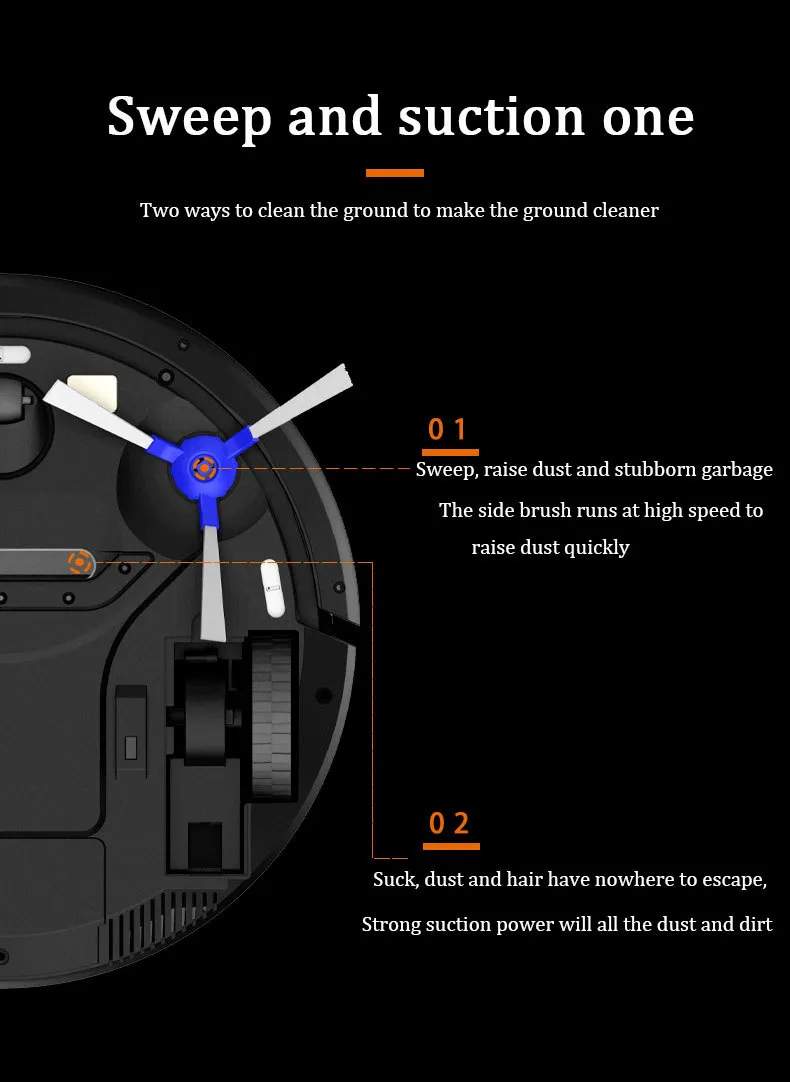 The vacuum cleaner is equipped with high suction power, capable of picking up dust, debris, and even pet hair. Whether it's in tight corners or along edges, this robot vacuum ensures that every nook and cranny is cleaned thoroughly. The suction power also ensures that the dustbin fills up efficiently, reducing the need for frequent emptying.
