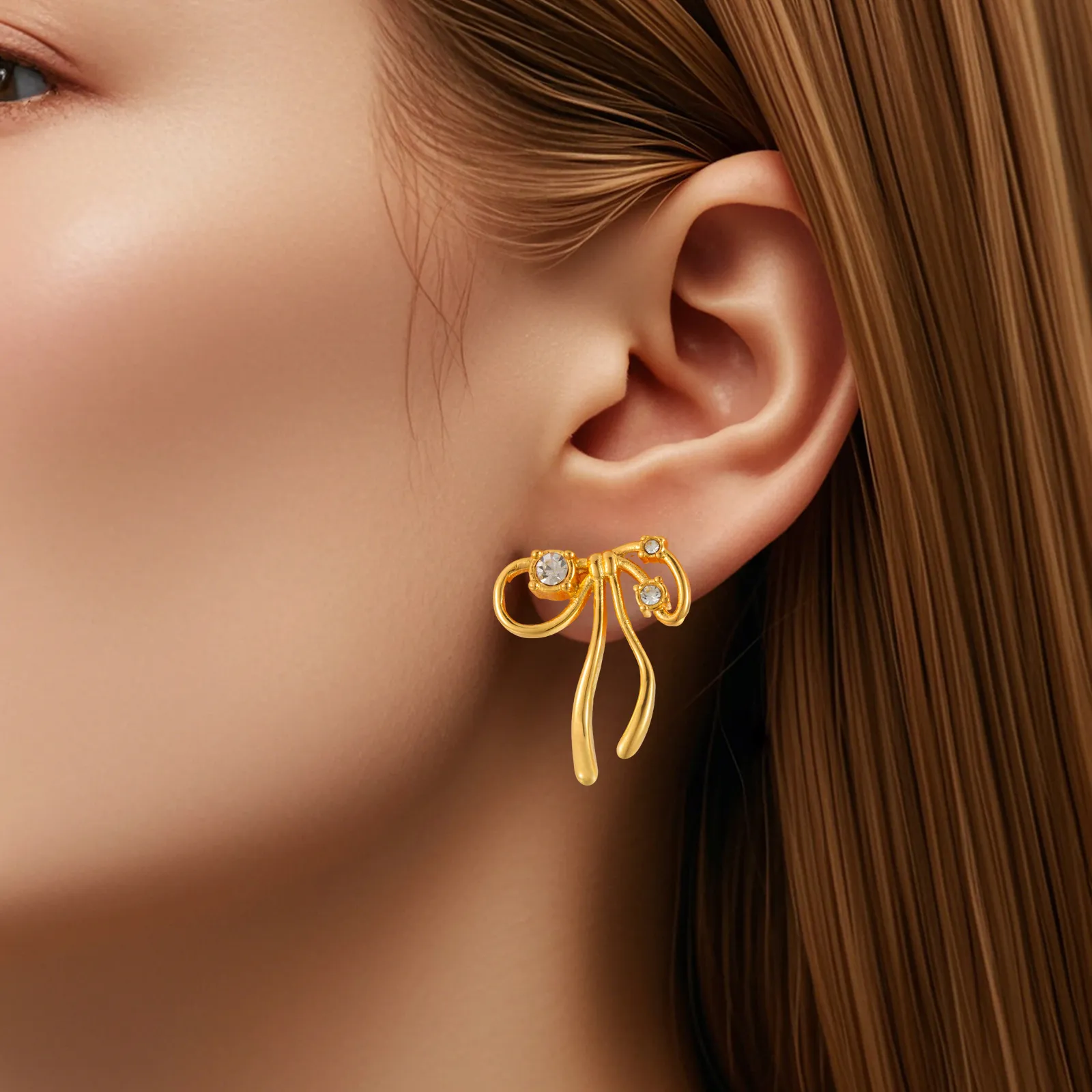 Sweet Bow Diamond Stud Earrings Fashion