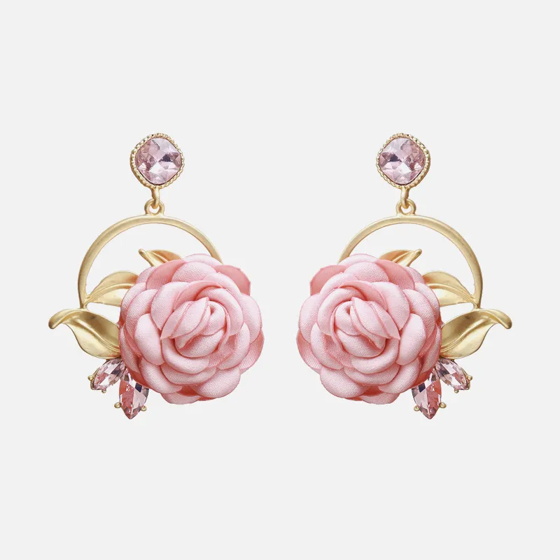Sweet Rose Earrings With Diamonds And Flowers