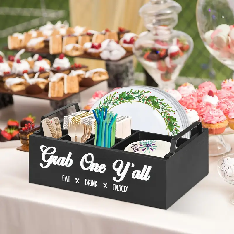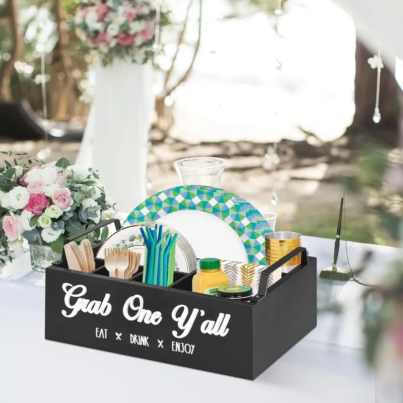 The Table Caddy with Napkin Holder is the perfect addition to any dining experience. Whether you're eating indoors or outdoors, this caddy ensures your napkins, condiments, and utensils are organized and within easy reach. With its sleek design, durability, and multi-functional compartments, it’s an essential accessory for anyone who enjoys a tidy, convenient, and stylish dining setup. Get yours today and take your dining experience to the next level!