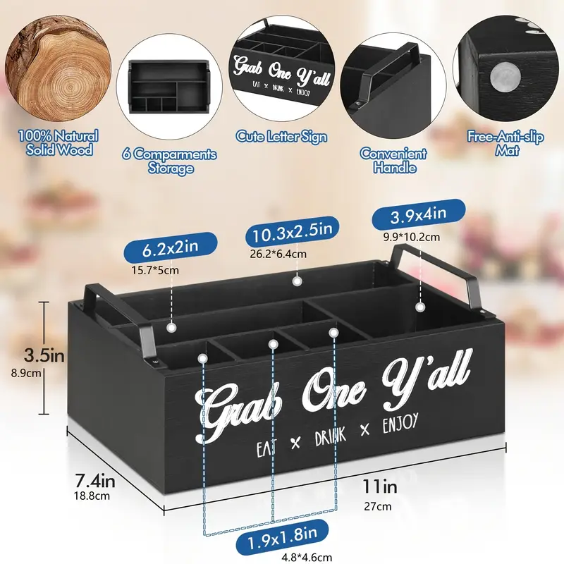 Families will love the convenience of this table caddy. It keeps everything organized, from napkins to condiments, making it ideal for quick meals and family dinners. No more losing track of your utensils or looking for napkins—everything is neatly organized and within reach.