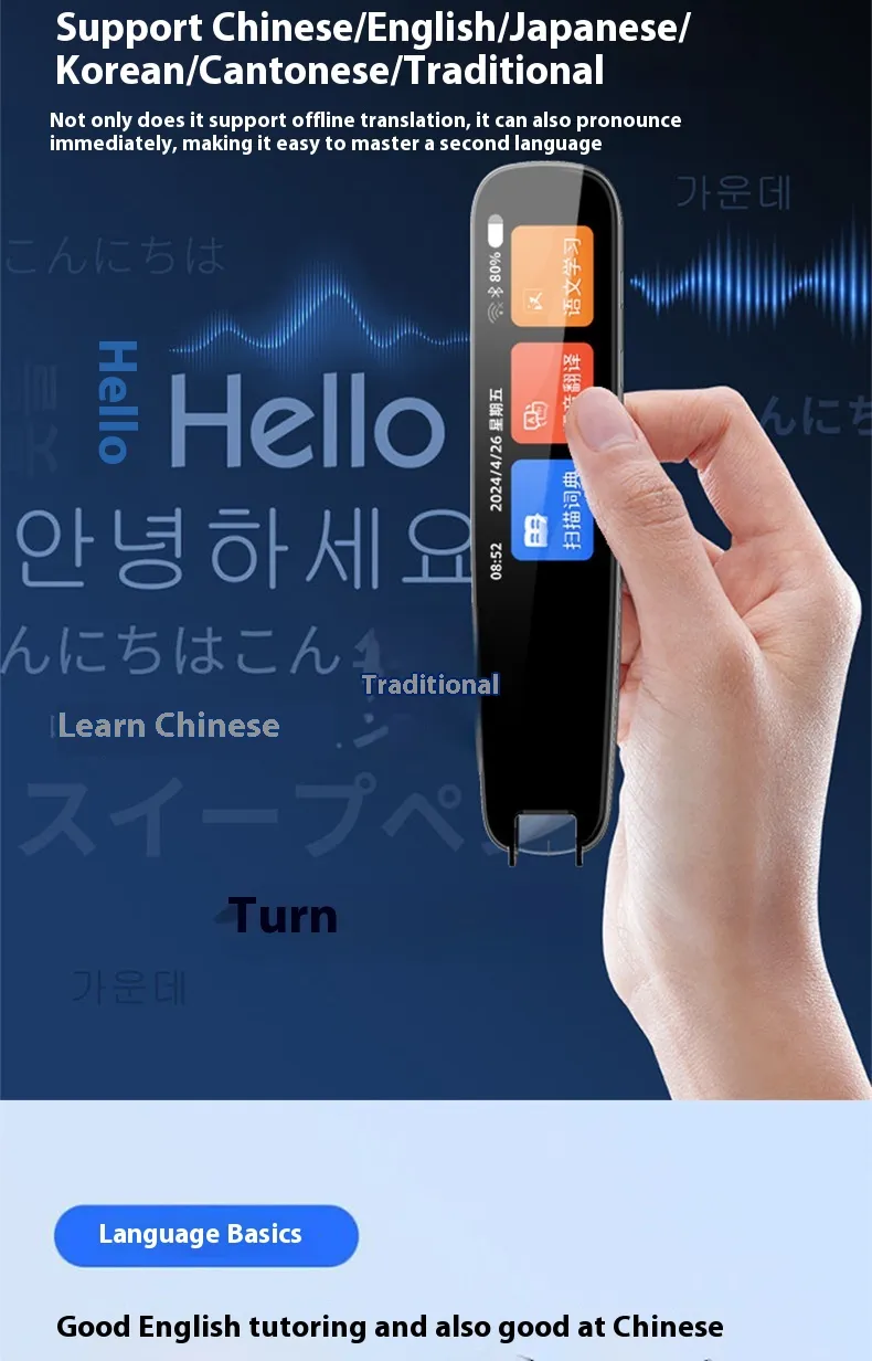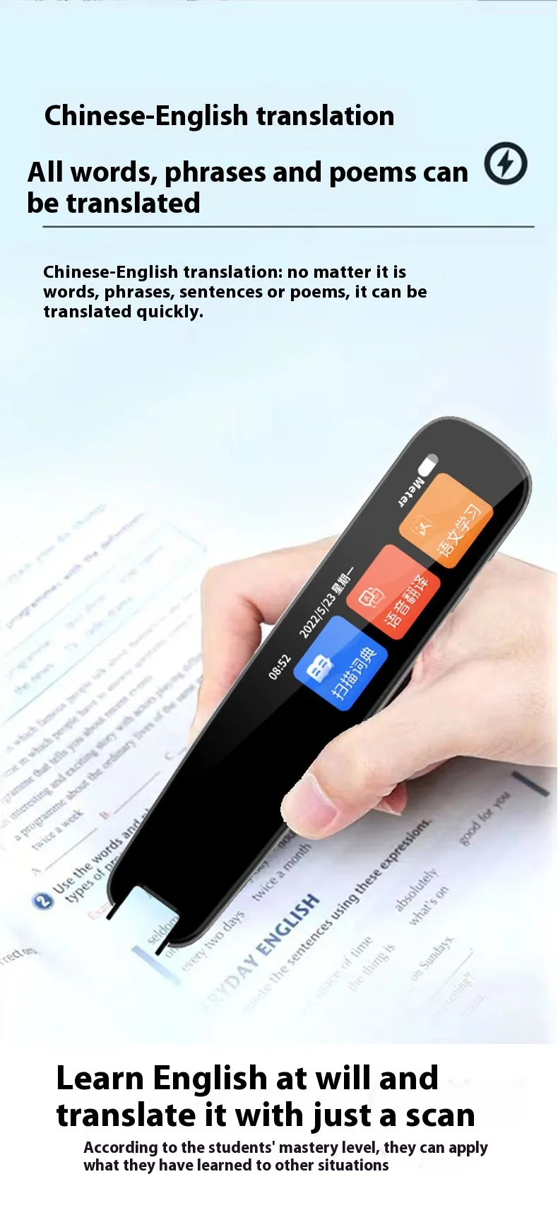 The Talking Pen Universal Offline Scan Translation Dictionary Pen is an advanced tool designed to make language learning easier and more interactive. This multifunctional pen scans text and instantly provides translations, pronunciations, and detailed explanations, making it an ideal companion for students, language learners, and professionals. Whether you are studying English, expanding your vocabulary, or practicing general language skills, this pen provides real-time, offline support without needing an internet connection. Perfect for use with textbooks, dictionaries, or any printed material, this pen turns traditional learning methods into a fun and efficient experience.
