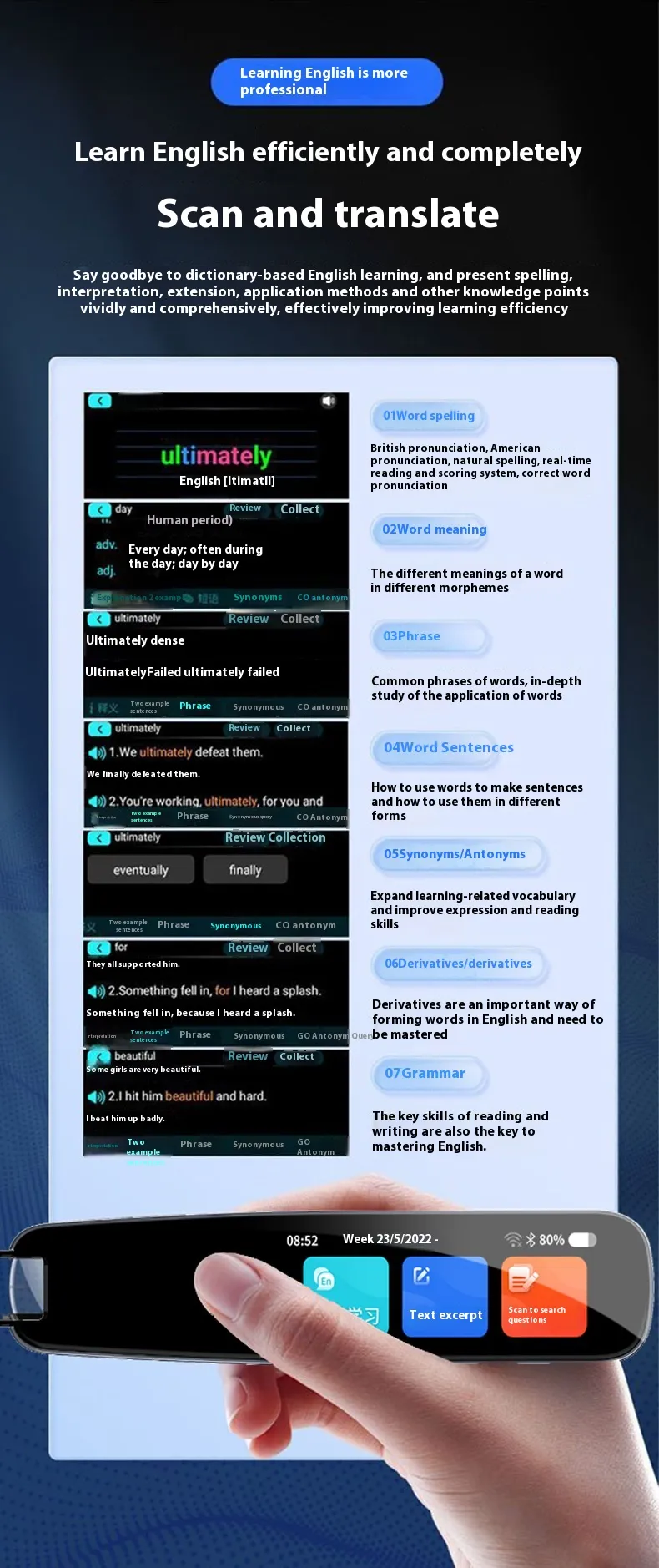 Built-in Dictionary: The pen includes a comprehensive built-in dictionary, providing access to thousands of words and