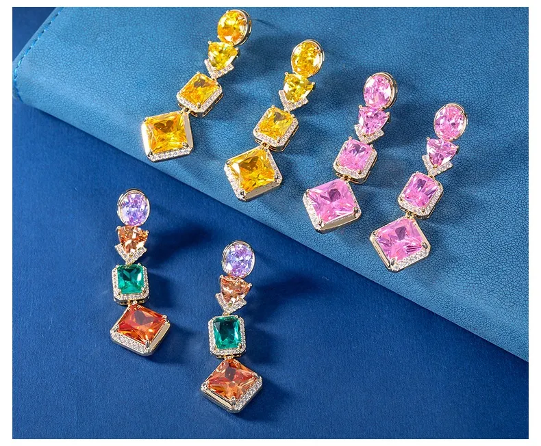 These earrings make for an exceptional gift for those you cherish, whether it's a birthday, anniversary, or special occasion. The combination of luxurious materials, vibrant color zircon stones, and a unique design ensures that these earrings will be treasured by anyone who receives them.