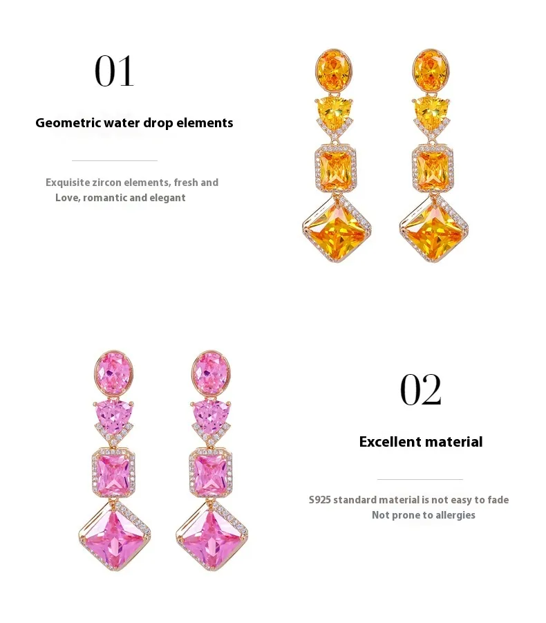 Despite their luxurious design and the attention to detail, the Tassel Geometric Water Drop Color Zircon Earrings are surprisingly lightweight and comfortable to wear. The S925 silver construction ensures they remain sturdy yet light enough for long periods of wear, making them suitable for daily wear or for those special occasions.