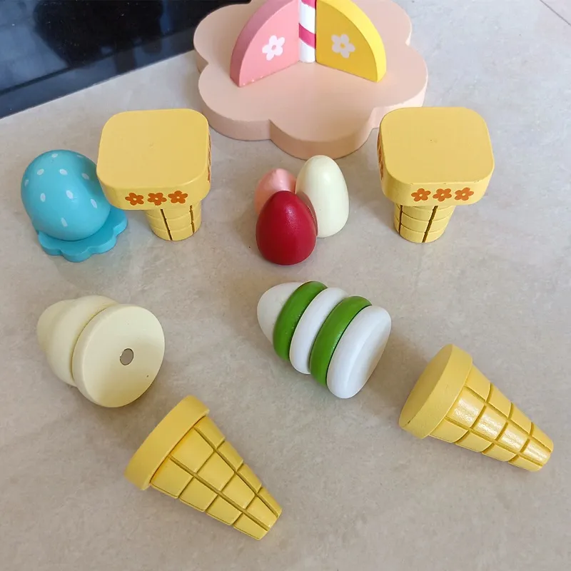 - 3-in-1 Play Set: Includes a wooden teapot, birthday cake, and coffee machine, offering multiple ways to engage in imaginative play.