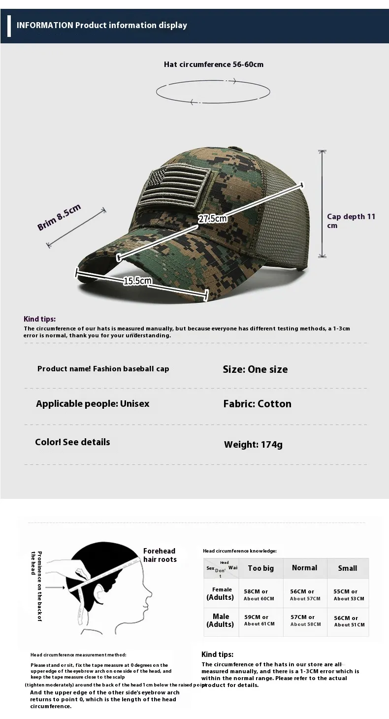 baseball hats. This design adds an element of ruggedness, perfect for outdoor adventurers and military-style fashion.